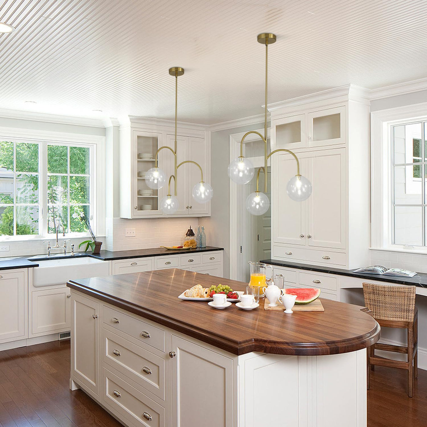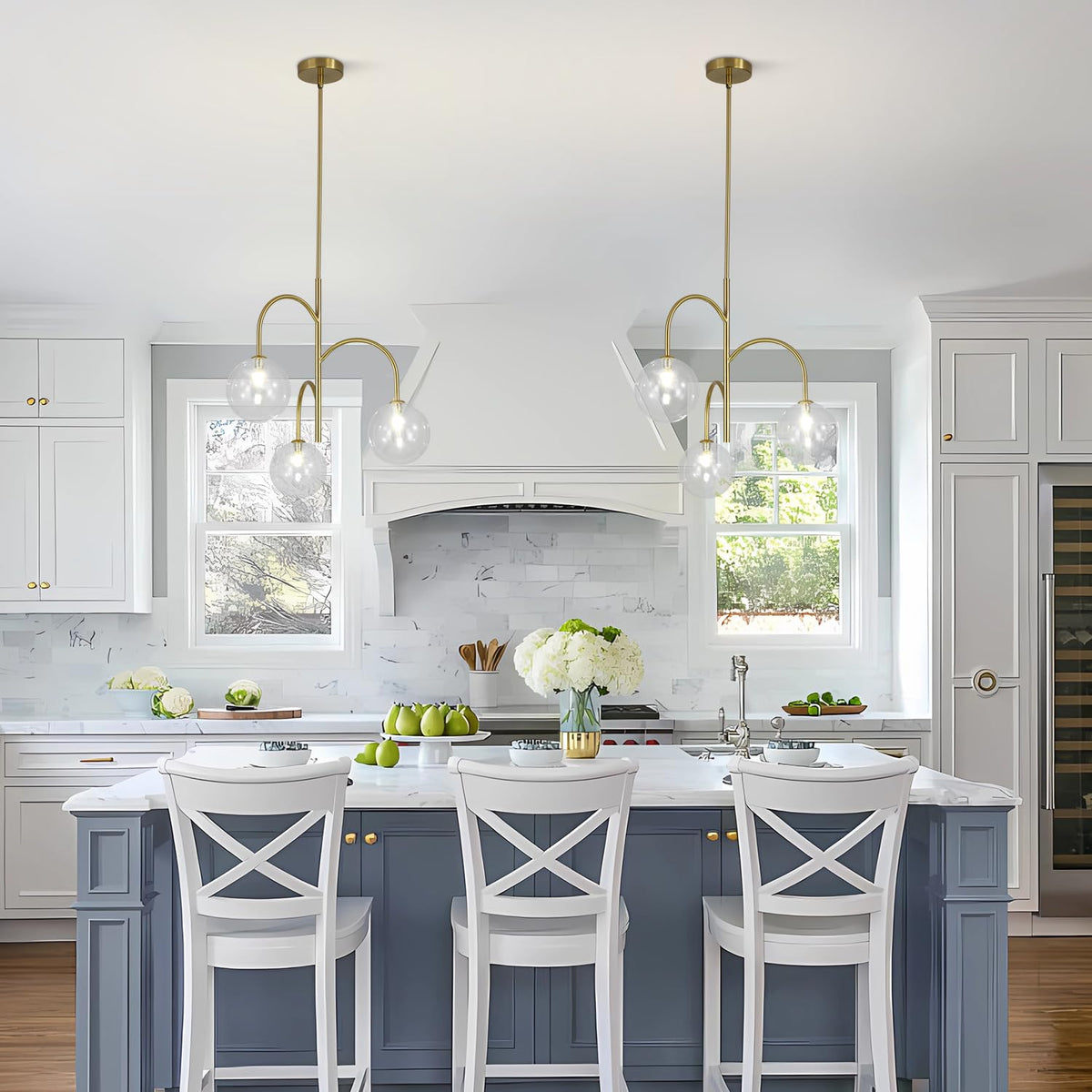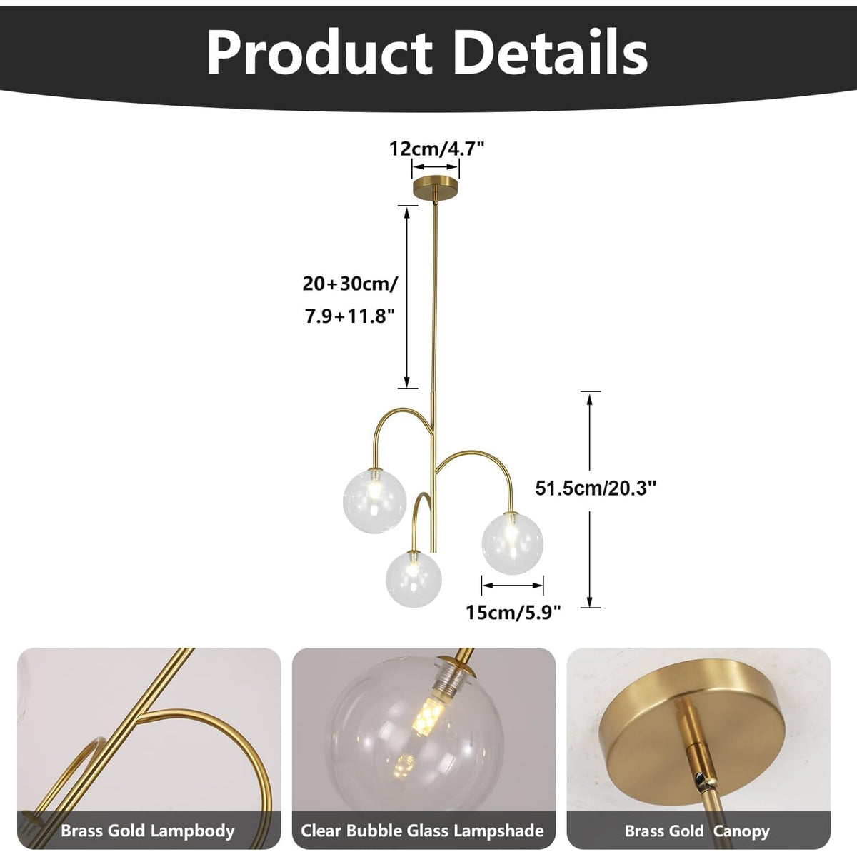 Description: Name: 3-Light Globe Chandelier Style: Modern/ Mid Century/Nordic/ Contemporary Material: Metal & Glass Color: Gold & Clear Height: 21.7 (55Cm) Globe Diameter: 5.9 (15Cm) Extension Rod: 7.9 +11.8 (20+30Cm) Canopy Size: 4.7 (12Cm) Light Source: G9 Base Type Of Bulb: Incandescent, Led, Cfl And Halogen Bulbs Special Feature: Adjustable Height Specific Uses: Indoor Voltage: 110-250V For Worldwide Wattage: Max 60 Watts Recommended Area: 15-25M Package Listed: 1* 3-Light Globe Chandelier 1* Accessories Kit 1* Customer Manual Warm Tips: 1. For A Longer Service Life, Please Install And Use It In A Dry Environment. 2. Do Not Touch The Light Bulb When It Is Working Well. 3. Keep Flammable Materials Away From The Lamp. 4. Before Replacing The Light Bulb, Cut Off The Electricity Supply And Allow The Bulb To Cool.
