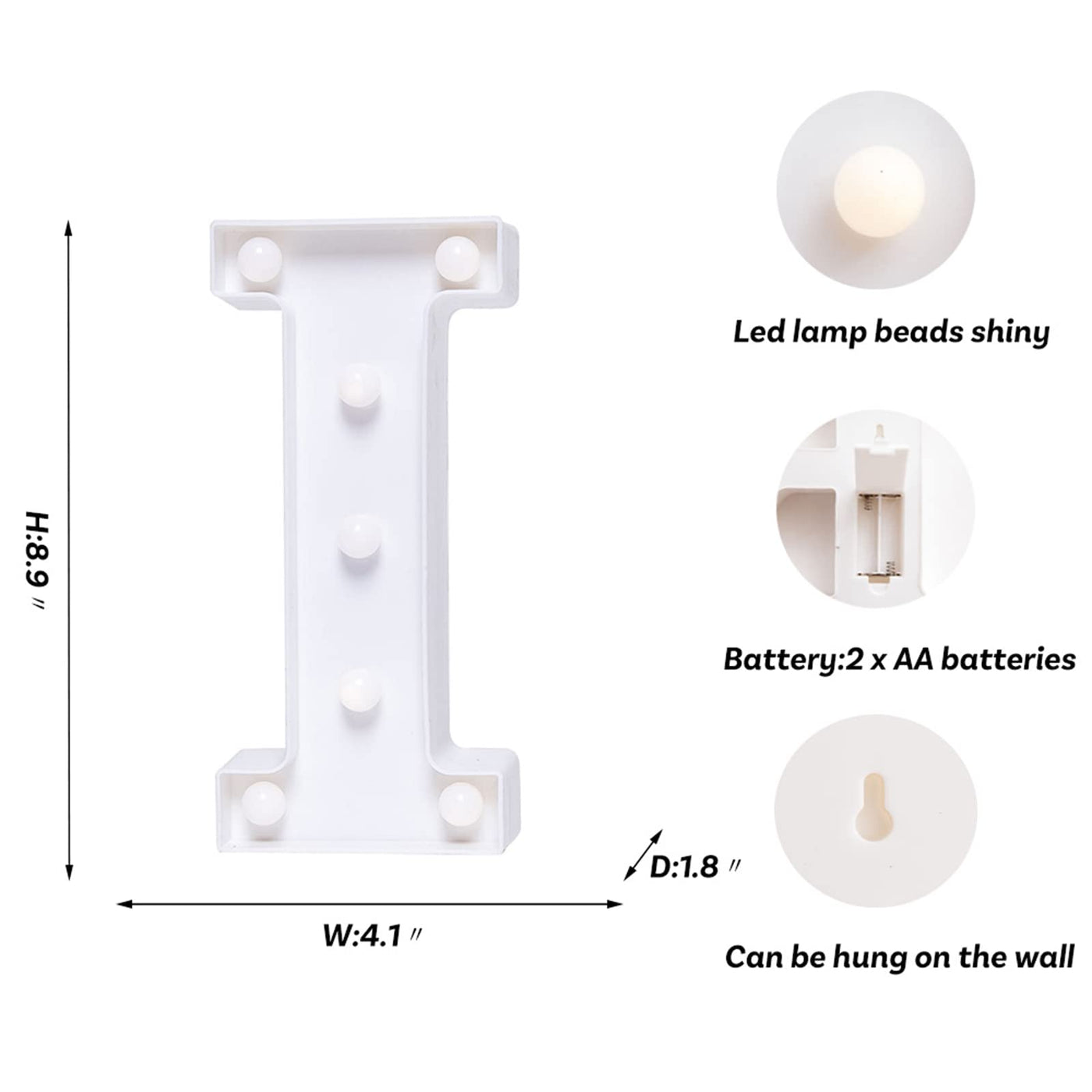 Foaky Led Letter Lights Sign Light Up Letters Sign For Night Light Wedding/Birthday Party Battery Powered Christmas Lamp Home Bar Decoration(I)