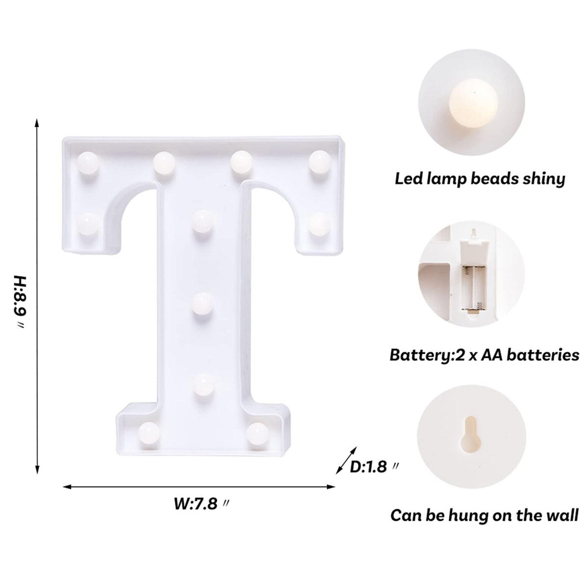 Foaky Led Letter Lights Sign Light Up Letters Sign For Night Light Wedding/Birthday Party Battery Powered Christmas Lamp Home Bar Decoration(T)
