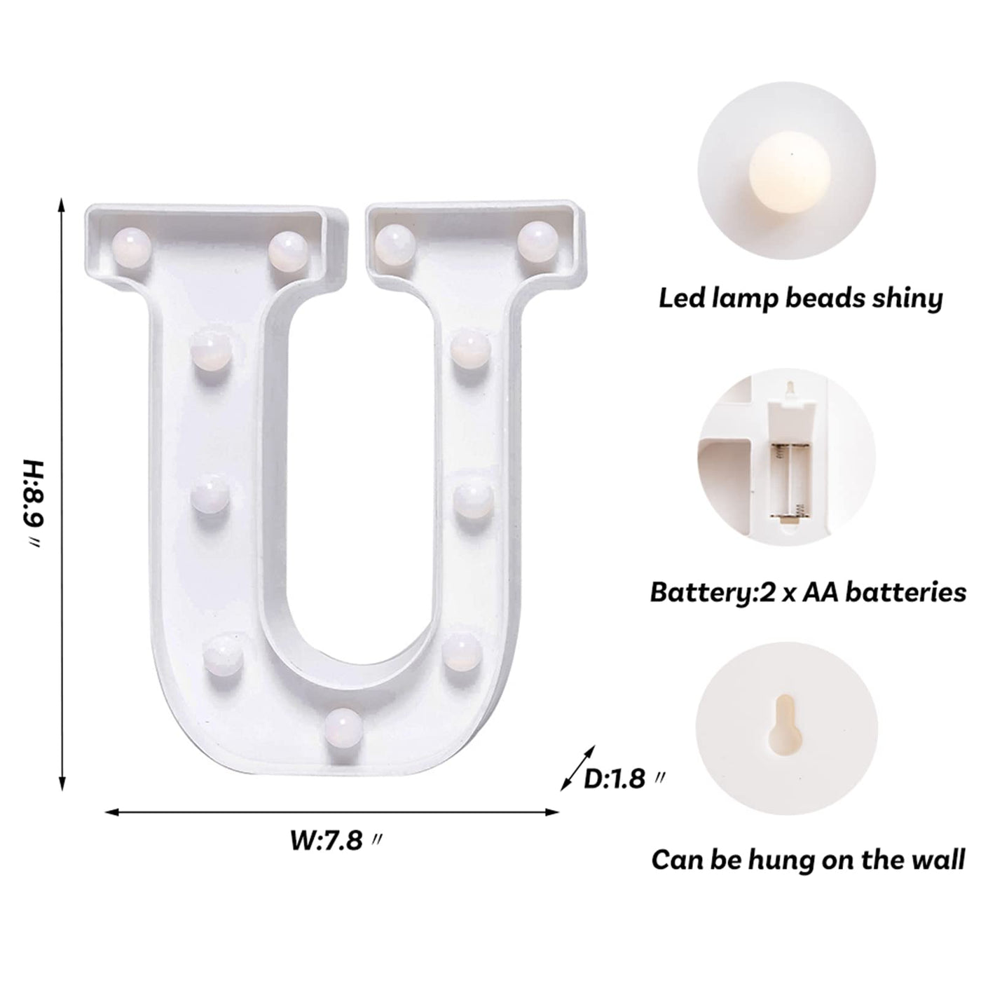 Foaky Led Letter Lights Sign Light Up Letters Sign For Night Light Wedding/Birthday Party Battery Powered Christmas Lamp Home Bar Decoration(U)