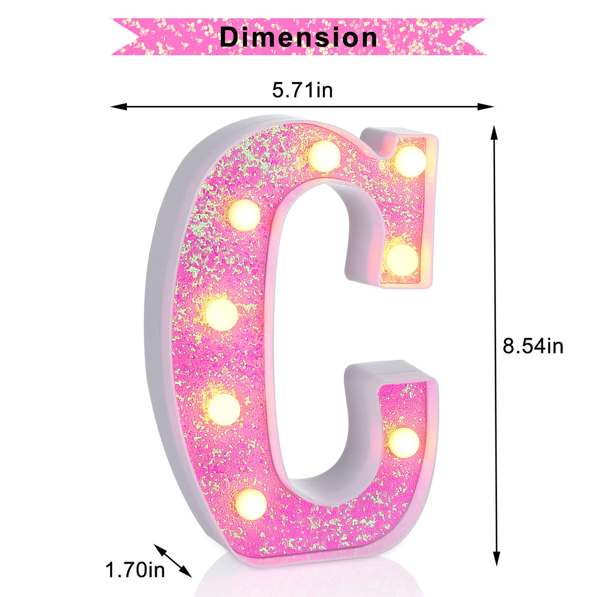 Foaky Led Letter Lights Sign Light Up Pink Letters Glitter Alphabet Letter Sign For Night Light Wedding/Birthday Party Battery Powered Christmas Lamp Girls Gifts Home Bar Decoration(C)