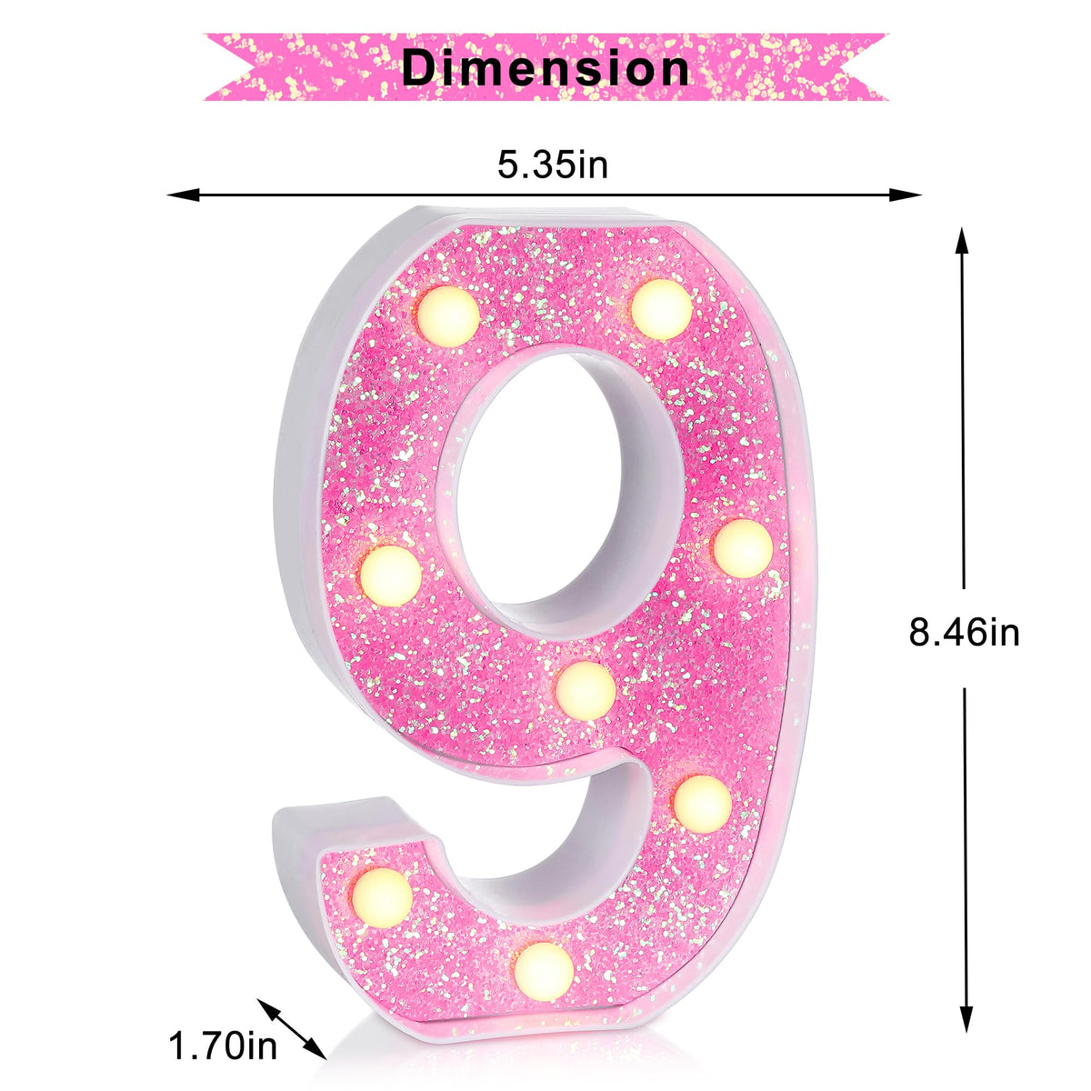 Foaky Led Letter Lights Sign Light Up Pink Letters Glitter Alphabet Letter Sign For Night Light Wedding/Birthday Party Battery Powered Christmas Lamp Girls Gifts,Number 9, 9Th 19Th Birthday Decoration (9)