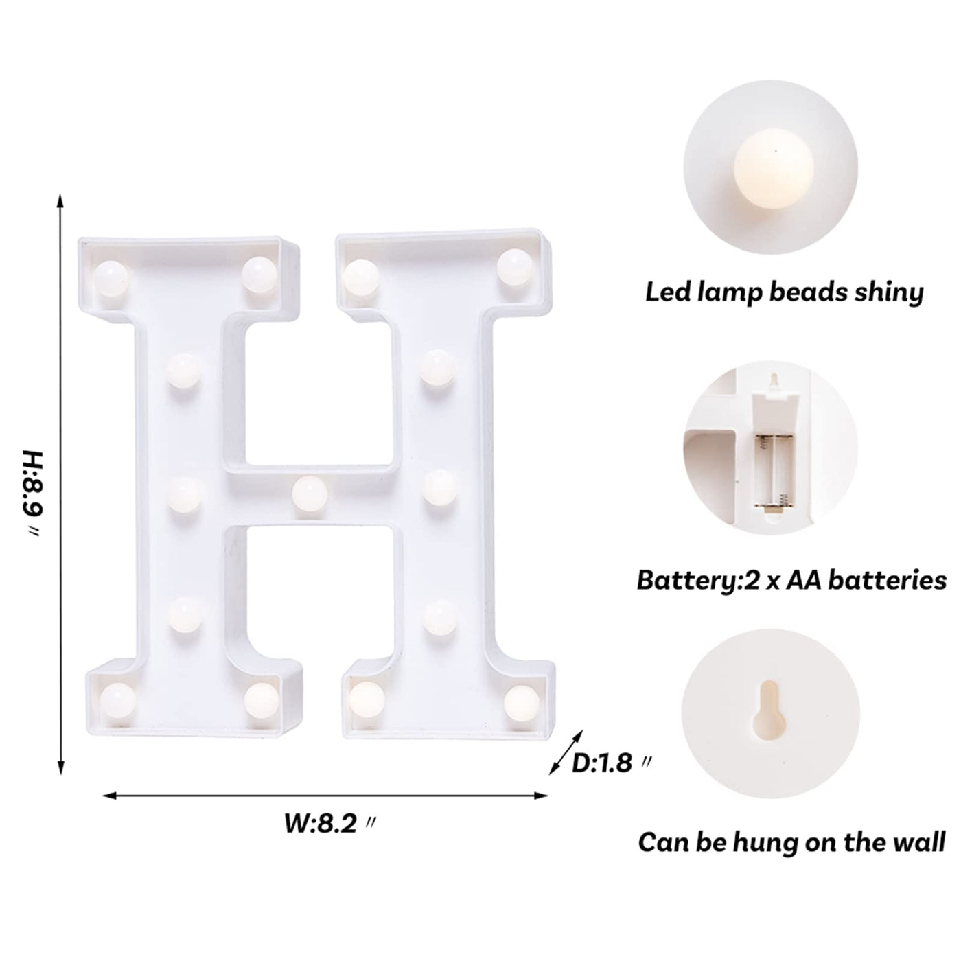 Foaky Led Letter Lights Sign Marquee Light Up Letters Sign For Night Light Wedding/Birthday Party Battery Powered Christmas Lamp Home Bar Decoration(H)