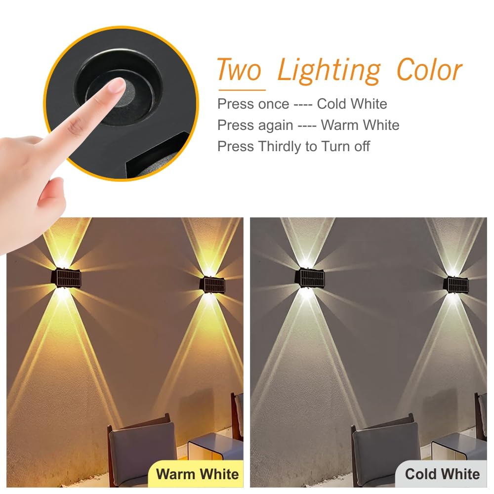 Focondot Solar Wall Lights Outdoor, 2 Pack Solar Powered Deck & Fence Lights, Waterproof, Dual Color