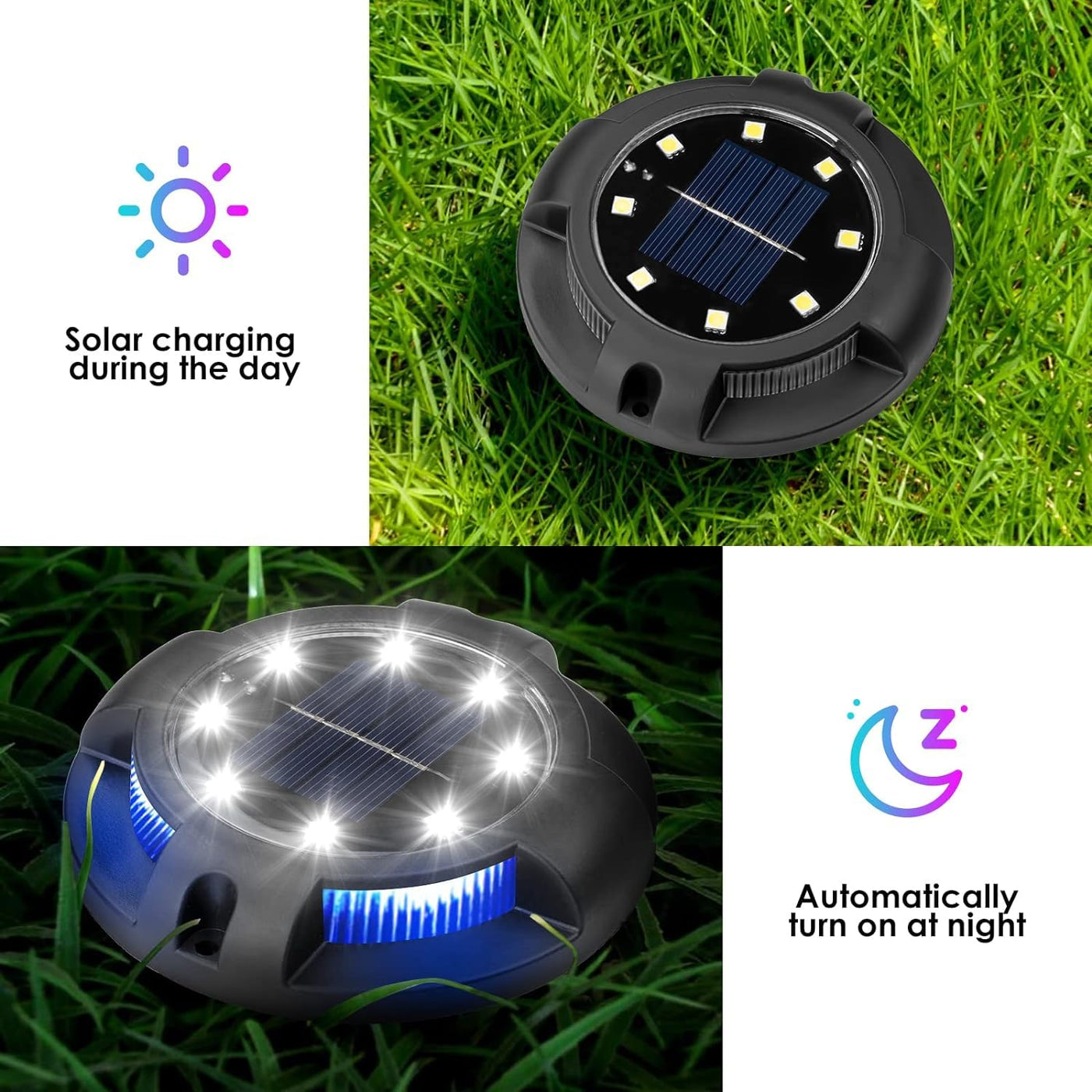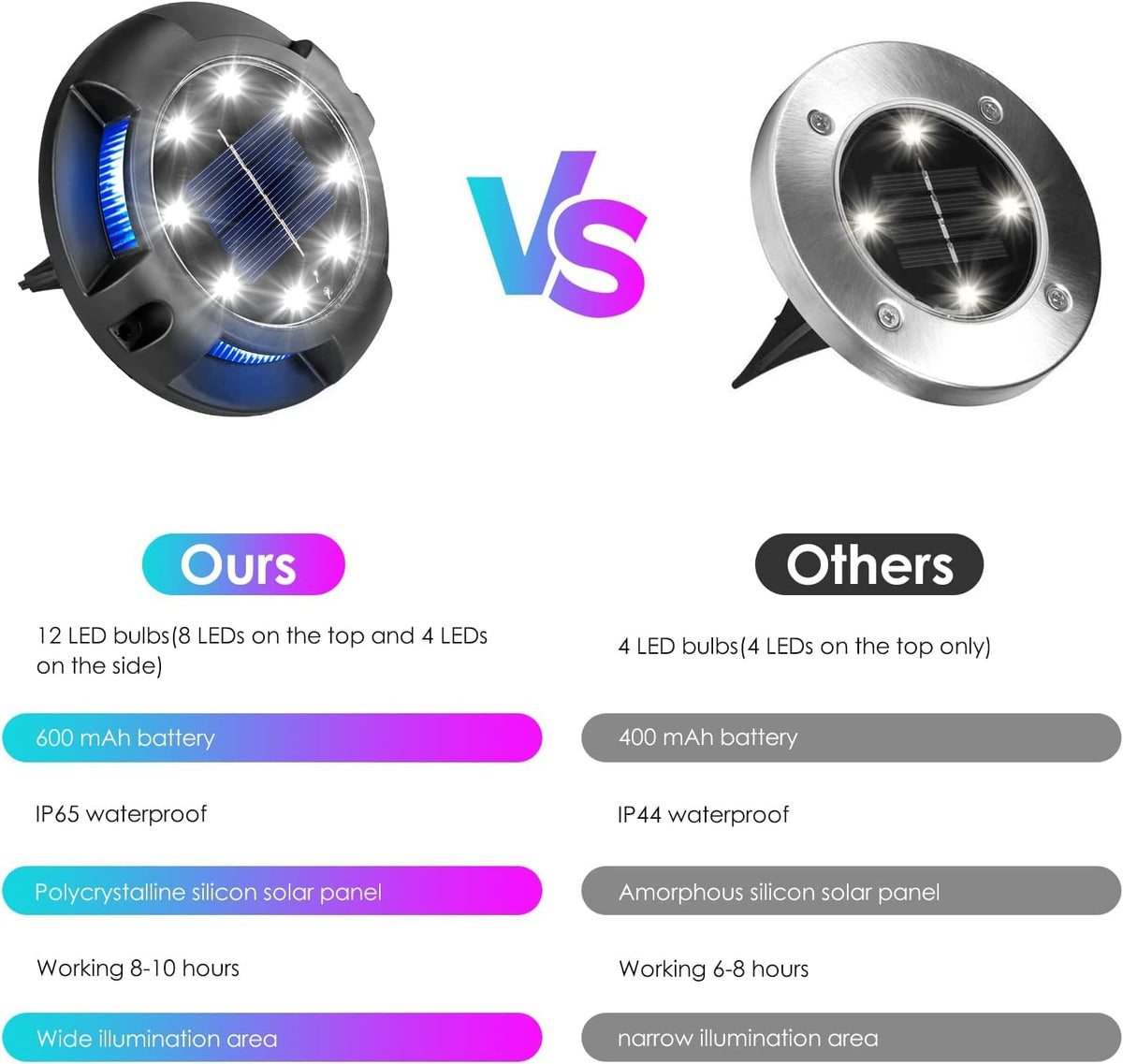 Fohil 12 Pack Solar Ground Lights Outdoor,12 Leds Solar Disk Lights Waterproof In-Ground Lights For Pathway Lawn Yard Patio Walkway Driveway Deck Garden Decor