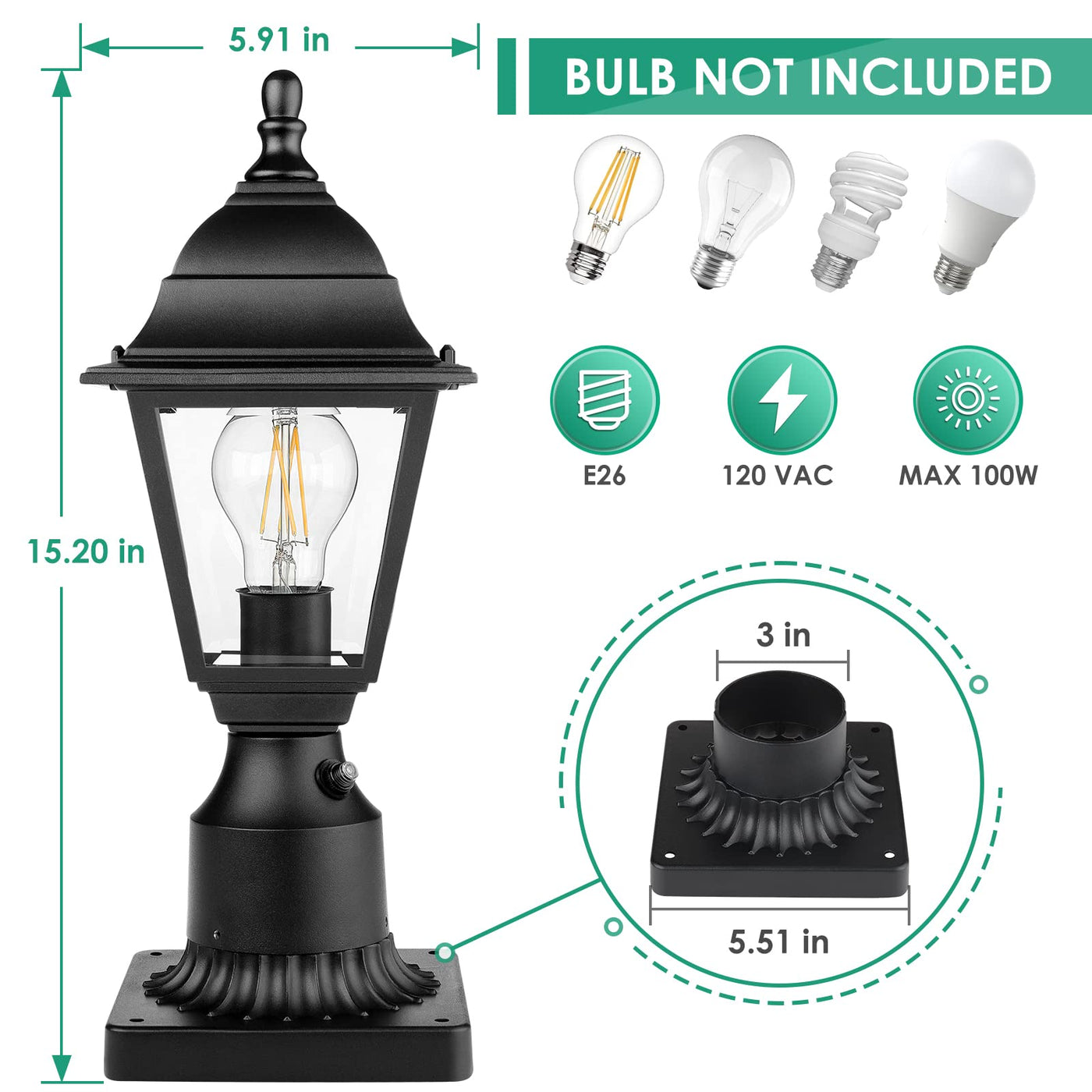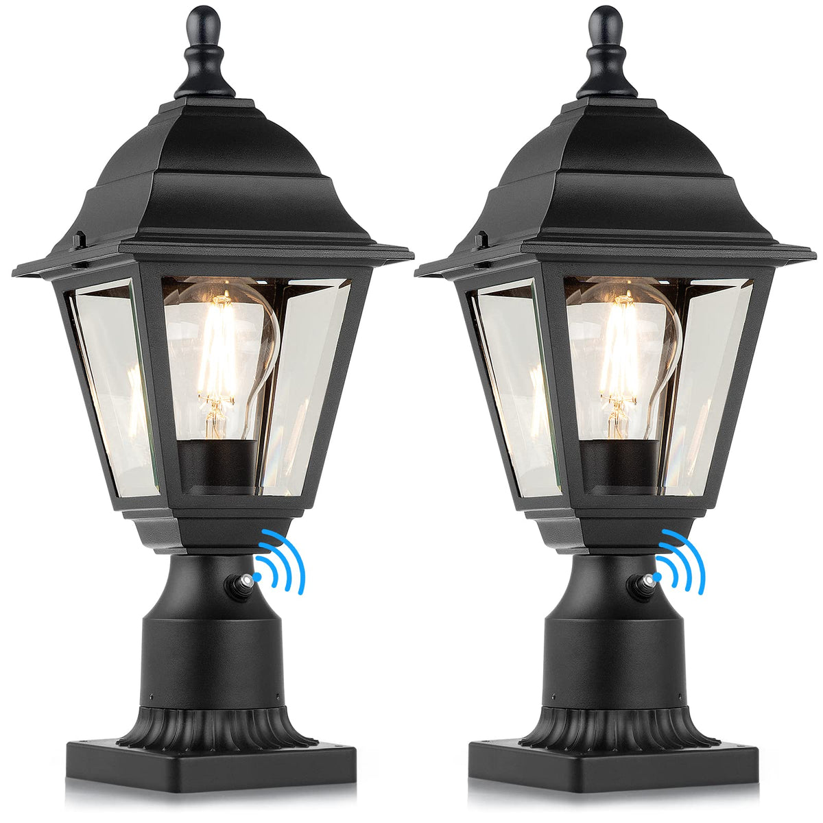 Folksmate Dusk To Dawn Outdoor Post Lights, 2-Pack Waterproof Outside Post Lamps With Pier Mount, Exterior Pole Lantern With Cle