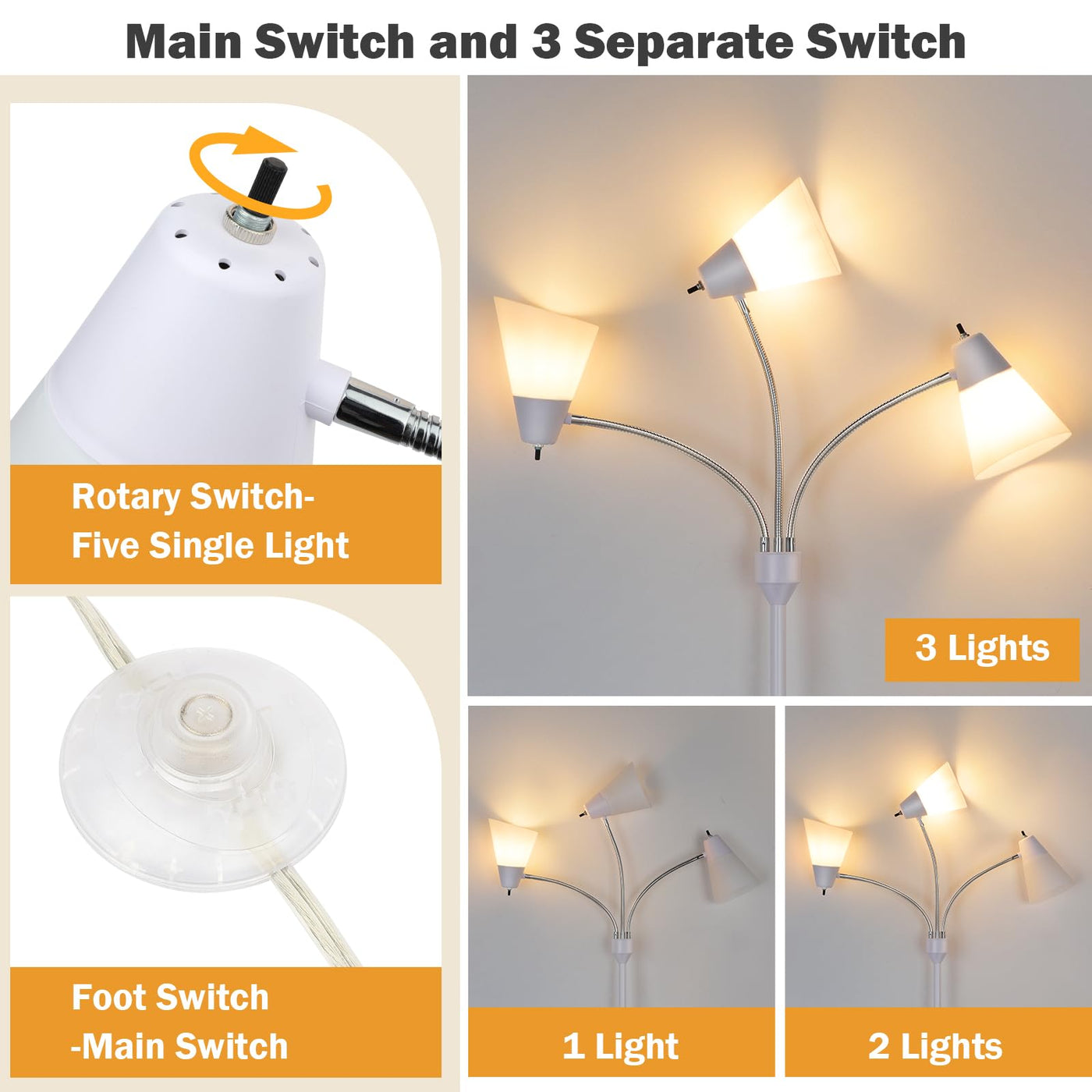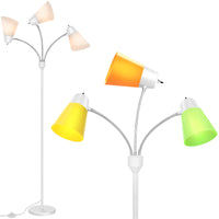 Adjustable Gooseneck Arms: This Tall Floor Lamp Comes With Flexible Gooseneck Arms That Allow For Great Flexibility In Lighting Area. The Arms Are 360 Bendable And You Can Freely Adjust The Lamp Heads Up And Down Or Point It In Different Directions To Add Tons Of Light. The 3-Light Tree Floor Lamp Is Perfect For Any Task, Work Or Sewing When You Need Night Light Or Reading Light. Main Switch And 3 Individual Switches: Easily Light Up Your Home With 3 Entire Lights By Using Foot Switch To Turn On/Off The Whole Rainbow Floor Lamp. The Living Room Floor Lamps Also Provide Separate Rotate Switches On Each Top Of The Lamp Shades, Which Can Independently Turn On/Off One Single Light, Simply Light Up One To Three Lights Based On Your Demand. Clockwise Rotate The Switch To Control Single Light. Safety And Bulb Requirement: We Take Safety Seriously Into Consideration. With A Heavy Stable Base And Metal Pole, This Kid Floor Lamp Adopts Good Stability, Which Is Safe For Your Children And Pet. Compatible With 25-Watt Max E26 Based Bulbs, Including Led, Cfl, Incandescent And Halogen Bulbs. Bulbs Are Not Included. The Standing Floor Lamp Can Also Work With Alexa, Apple Homekit, Google Home Assistant Or Other Smart Home Devices. (Requires Separate Purchase Of Smart Bulbs And Sockets.) Two Set Of Lamp Shades For Various Scenes: The Colorful Floor Lamp Is Equipped With Two Set Of Lamp Shades. You Can Use The 3 White Shades For Bedroom, Study Room And Office To Add Simple Bright Light. And 3 Multi-Colors Shades For Kid Room, Living Room And Drawing Room To Add A Pop Of Color In Daily Life Or To Be Festive For The Holidays! With Its Beautiful Black Finish And Minimalistic Sleek Lines, The Bedroom Floor Light Fits Well With Urban, Modern, Rustic And Artistic D Cor Style.