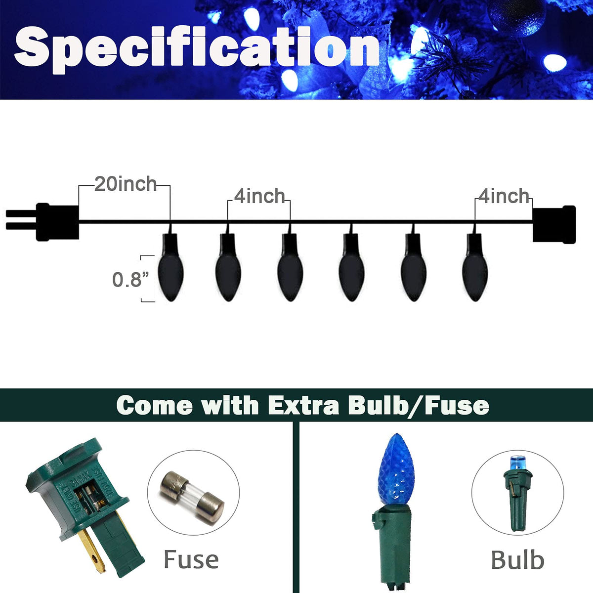 These string lights feature a vibrant blue color and are crafted from durable plastic, ensuring longevity and resilience against various weather conditions. With a total length of 18 feet and equipped with 50 energy-efficient LED bulbs, they provide ample lighting for your decorative needs. The low power consumption of just 4.8W makes them an environmentally friendly option, minimizing electricity usage while still delivering bright illumination. The lights have been safety tested and are UL listed, offering peace of mind during your holiday festivities.