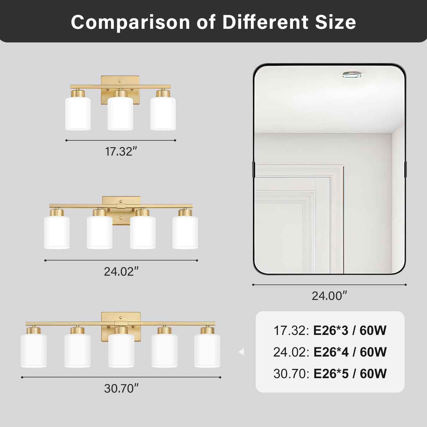 Gold Bathroom Light Fixtures, 5-Light Modern Vanity Light Over Mirror, Wall Sconces with Milky White Frosted Glass Shades, E26 Socket (Bulbs Not Included)