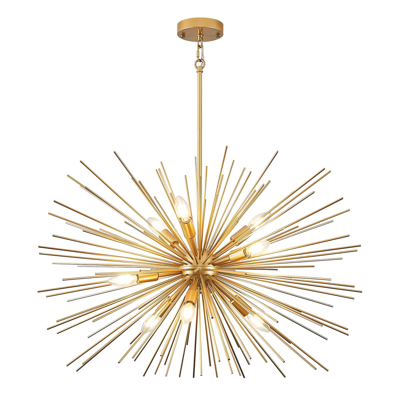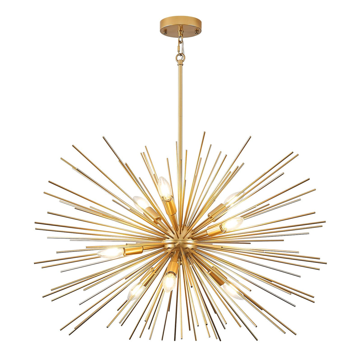 Fookchak 32In Gold Sputnik Chandelier Solid Metal Starburst Chandelier Light Fixture 9-Light Mid-Century Modern Satellite Light