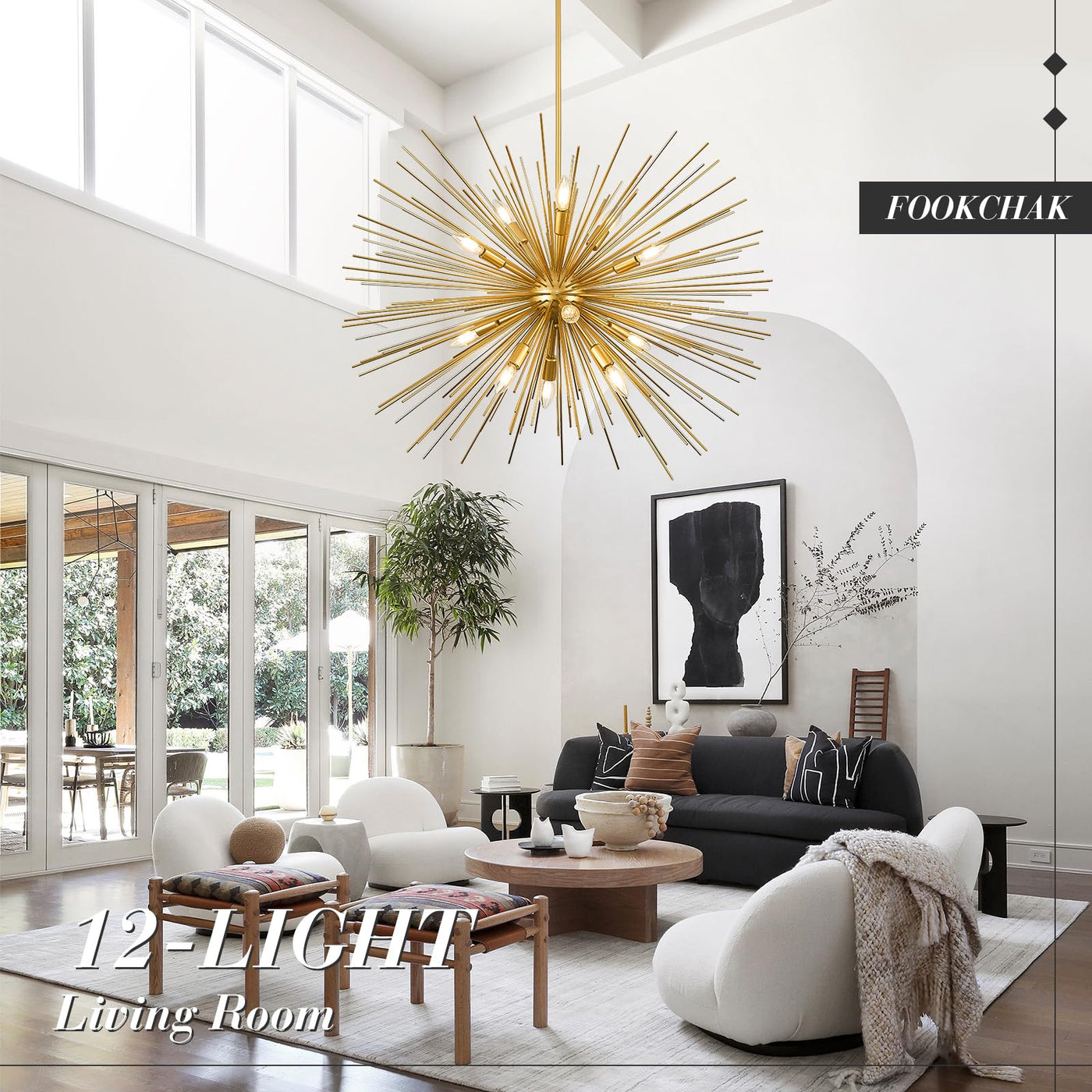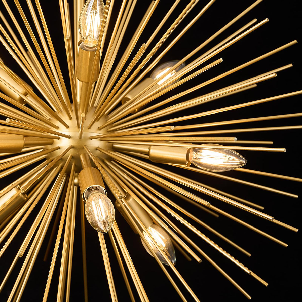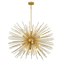 Fookchak 35In Gold Sputnik Chandelier 12-Light Starburst Chandelier Light Fixture Solid Metal Mid-Century Modern Satellite Light