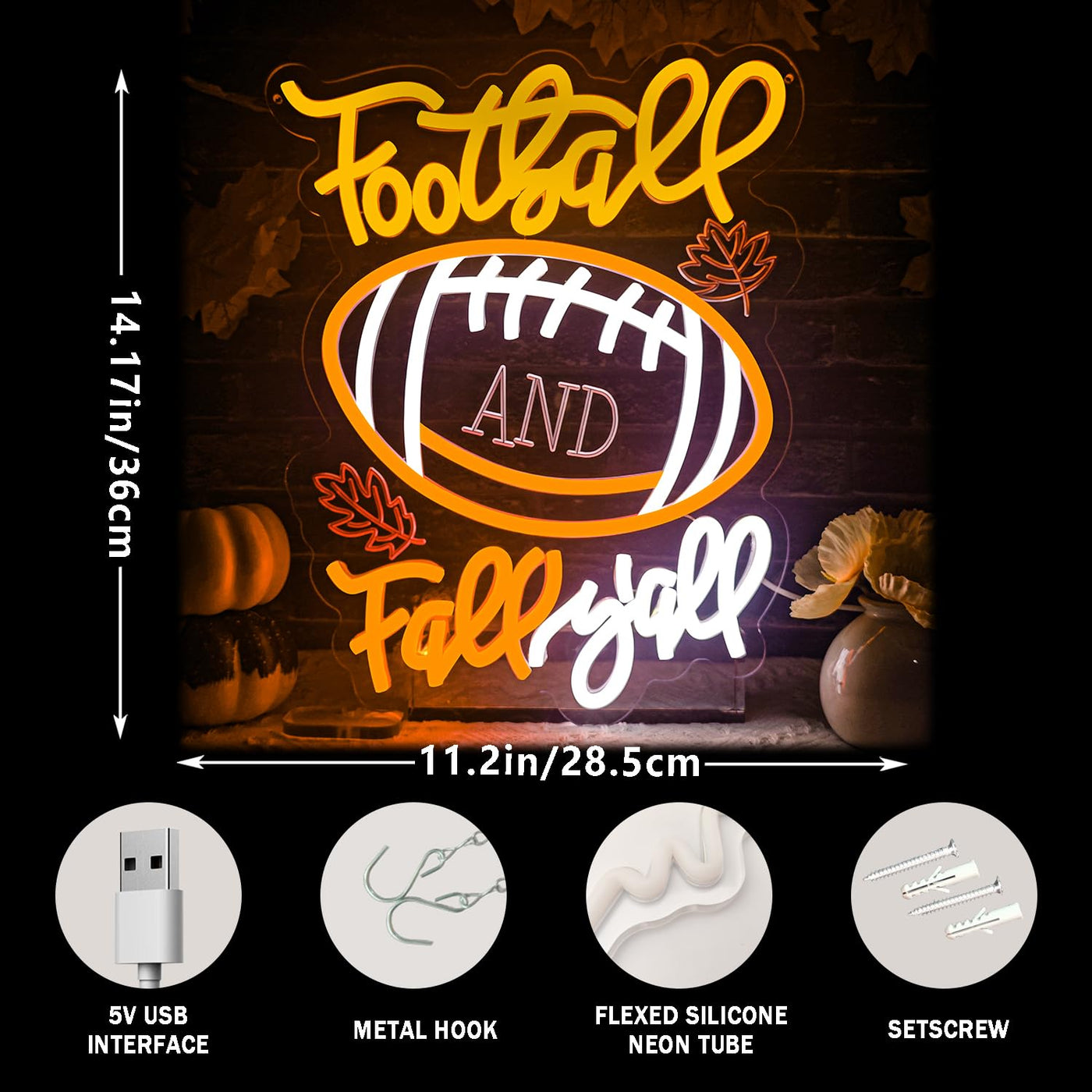 Football Fall YAll Neon Sign Maple Leaf Neon Sign Thanksgiving Led Neon Light Sign Thanksgiving Decorations For Autumn Room Bedroom Table Wall Decor Kids Holiday Gift Usb Powered