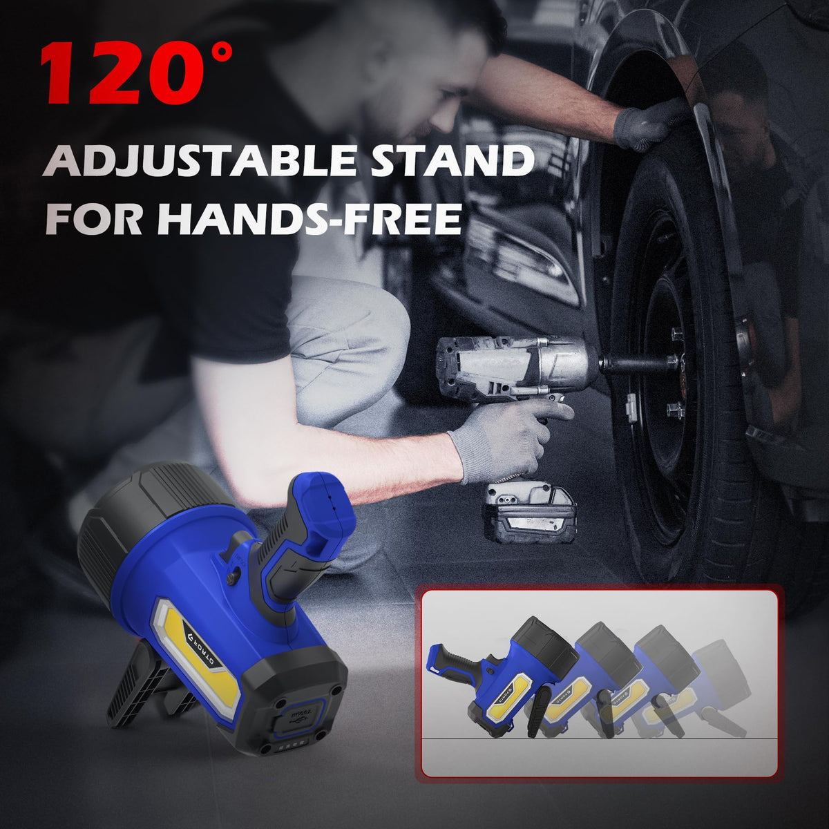 ?Ultra-Bright Rechargeable Spotlight Flashlight?This LED spotlight delivers a powerful 200000-lumen beam, making it perfect for wide-area illumination in the darkest environments. Whether youre exploring, camping, or facing emergencies, this handheld spot light flashlight offers incredible brightness and long-range visibility. Powered by a high-capacity 4400mAh rechargeable battery, it ensures extended usage without interruption. | ?IPX7 Waterproof & Durable Construction?Designed for extreme outdoor use, this waterproof spotlight features IPX7-rated protection and a rugged ABS shell with a shock-absorbing silicone cover. It can survive drops from up to 3ft and is fully submersible, making it a reliable LED flashlight for boating, fishing, hiking, and emergency rescue operations. | ?Precision Spotlight with 80000 Candela?Designed for the outdoors, this high-intensity beam cuts through darkness to reveal trails, terrain, and movement in forests, hills, or fields-perfect for night hikes, exploration, and remote patrols. | ?6 Lighting Modes? Featuring 6 distinct lighting modes, including high, low, flood, red emergency, high+red emergency, and low+red emergency settings, this rechargeable spotlight can adapt to a wide range of situations, from search and rescue operations to camping and outdoor activities, providing the right lighting for every task. | ?120