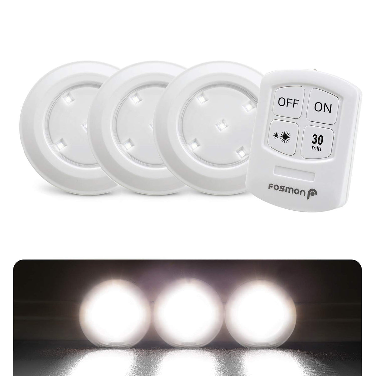 Fosmon Wireless LED Puck Light 3 Pack with Remote Control, Under Cabinet Lighting [5 Daylight White LED, Wide Floodlight Tap Sty