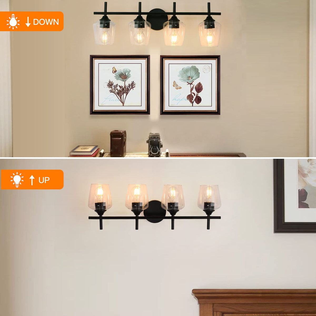 Foucasal Black Bathroom Light Fixtures - 4-Light Vanity Light With Clear Glass Shade, Industrial Matte Wall Lights For Bedroom H