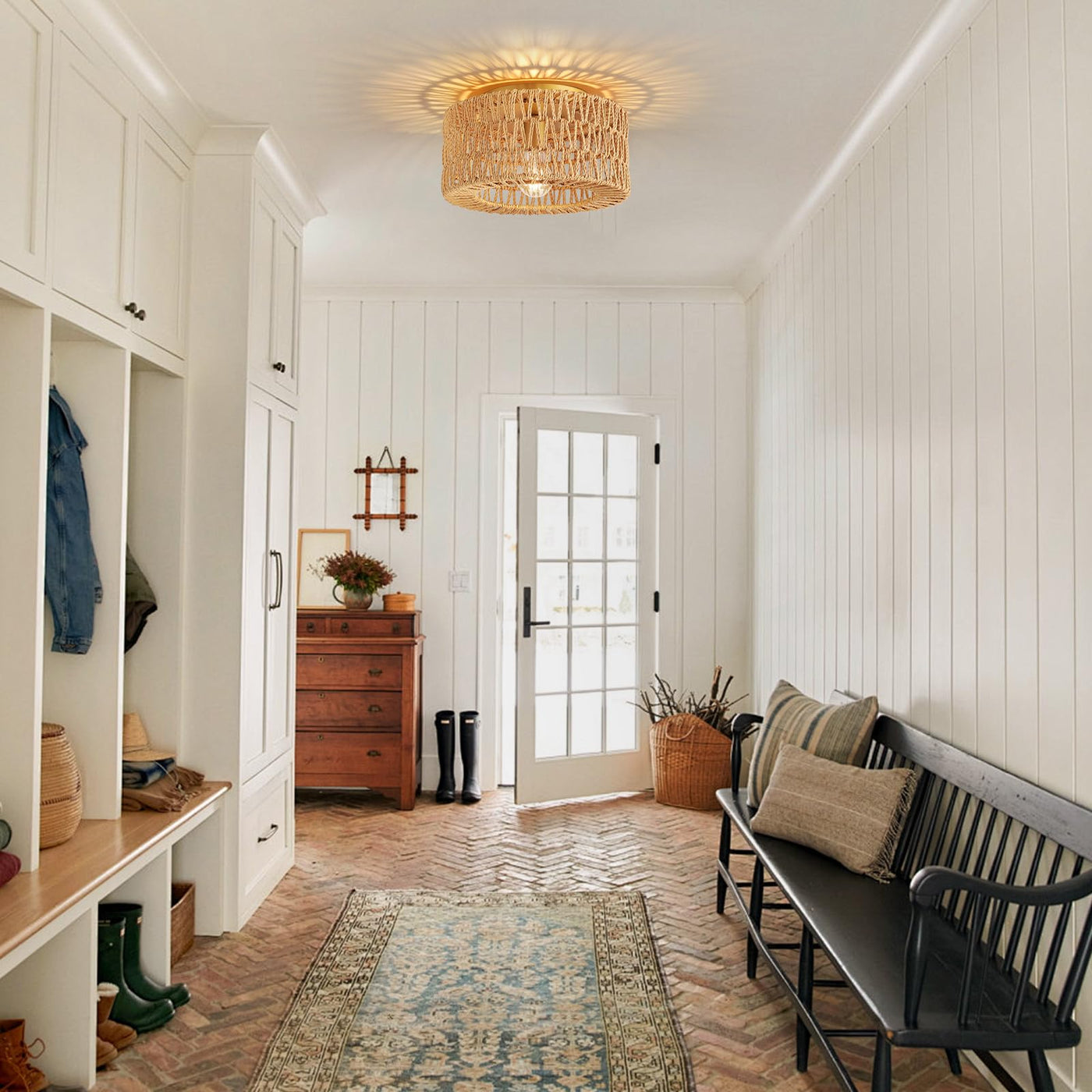 Foucasal Boho Flush Mount Light Fixture, Coastal Ceiling Light Fixtures Woven Rattan Chandelier For Hallway Bedroom Kitchen Entr