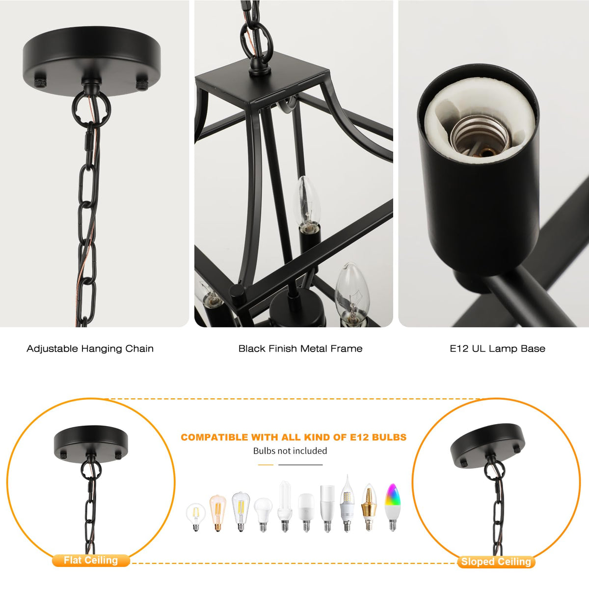 Lantern Pendant Light Black Hanging Light Fixtures Chandelier With E12 Bulb Base 9.4'' Adjustable Farmhouse Chandelier Lighting Fixture