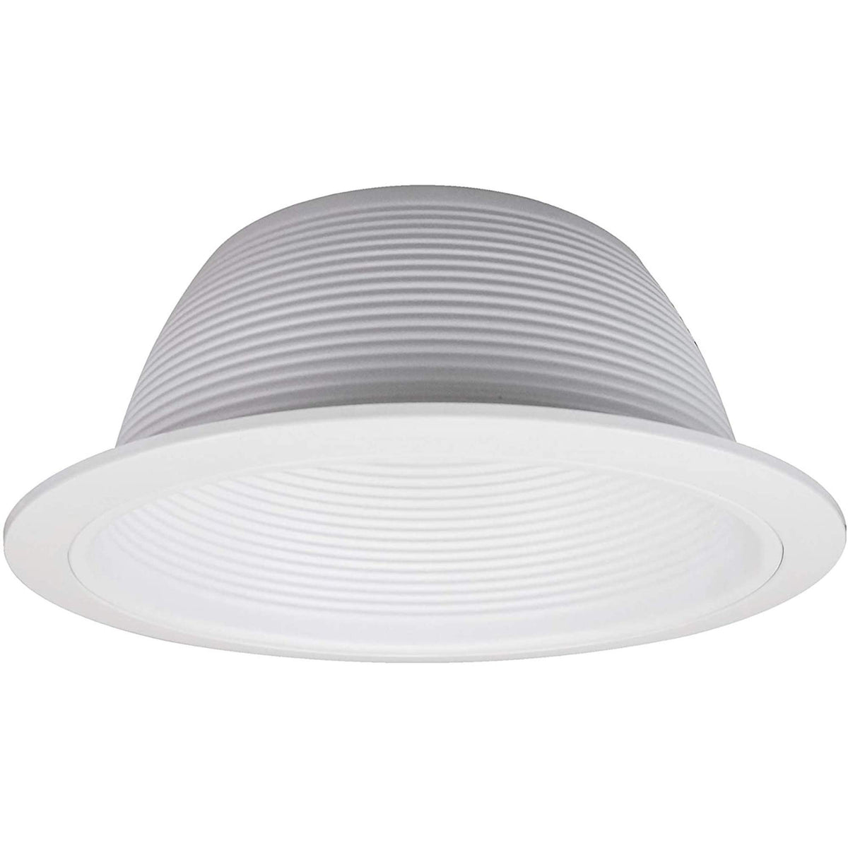 Add an easy-to-install white stepped baffle with white trim to your 6-inch recessed downlight housings to complete a modernistic look. This baffled trim is UL listed for damp locations and can be used in places such as bathrooms, kitchens, and outdoor covered ceiling applications. 6 inch regressed trim for use with 6 Inch remodel or construction recessed lighting. This 6 inch light cover measures 7.25 inches in diameter and 2.75 inches high.
