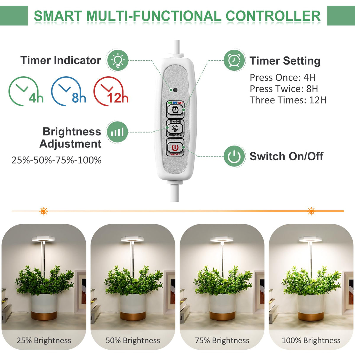 Q: How does the auto on/off timer work on this plant light?A: The grow light features a convenient auto on/off timer with three cycle settings: 4, 8, or 12 hours. It will automatically turn on and off at the same time each day, allowing you to maintain an ideal light schedule for your plants without manual intervention.