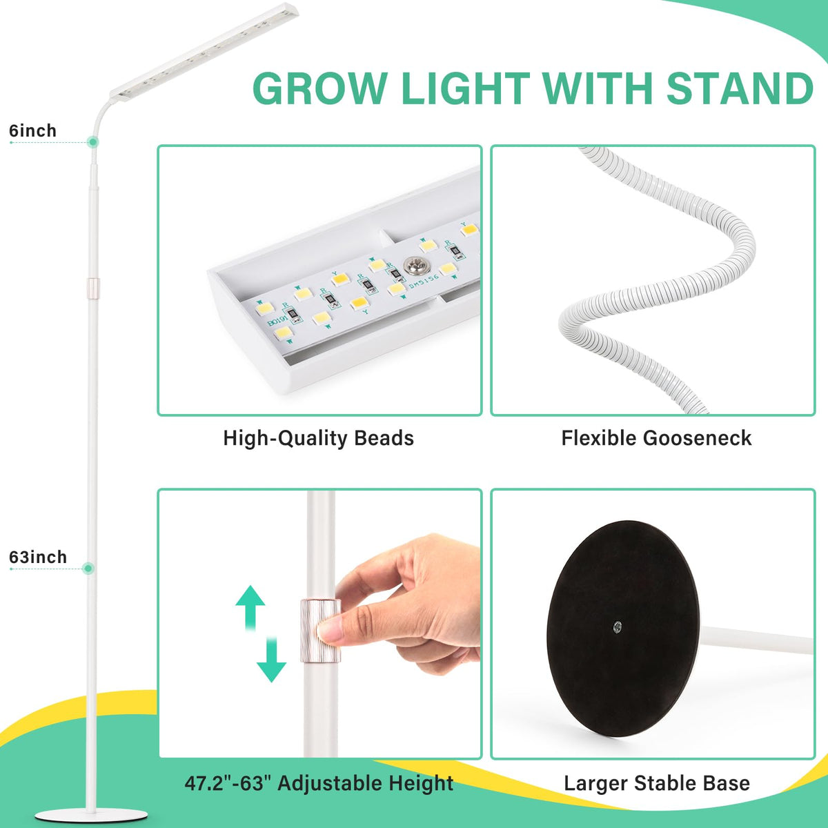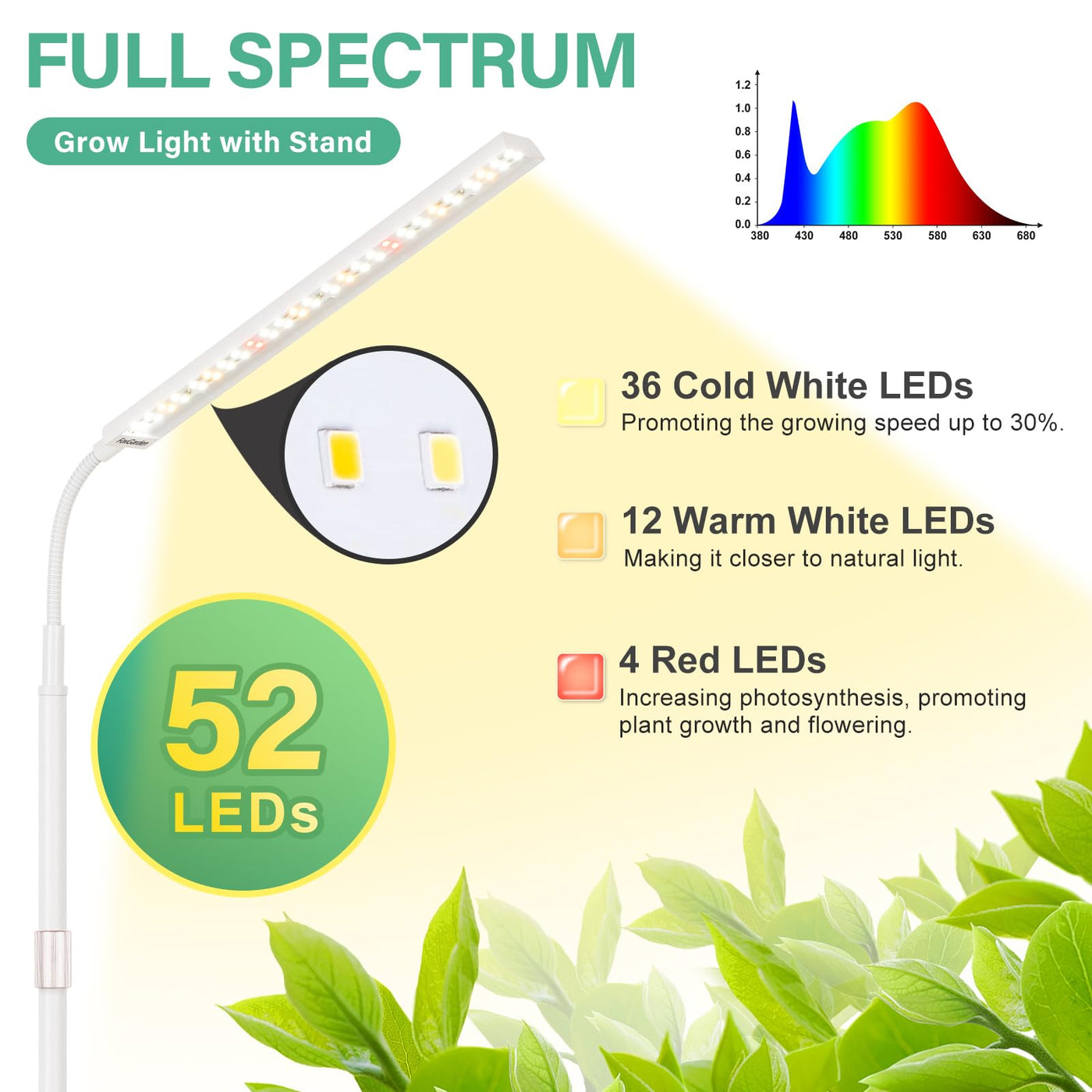 Foxgarden® Grow Light, Full Spectrum Plant Light Strip With Stand For Indoor Plants, 47.2-63 Inches Height Adjustable, Bright Grow Lamp With Auto On/Off Timer 4/8/12H, 4 Dimmable Brightness, White