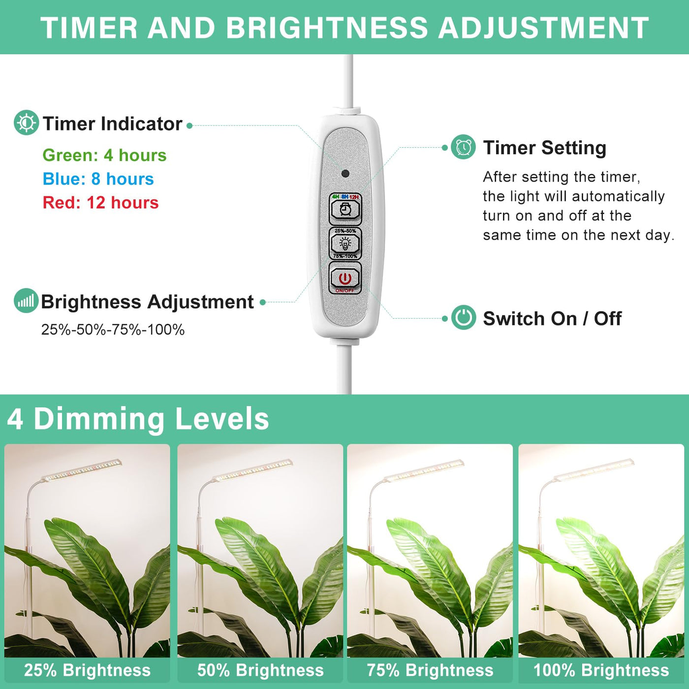 Q: What are the brightness settings available on the FOXGARDEN® Grow Light?A: The FOXGARDEN® Grow Light offers four dimmable brightness settings: 25%, 50%, 75%, and 100%. This feature allows you to adjust the light intensity to meet the specific lighting requirements of your plants at different growth stages, promoting healthier and more vigorous growth.