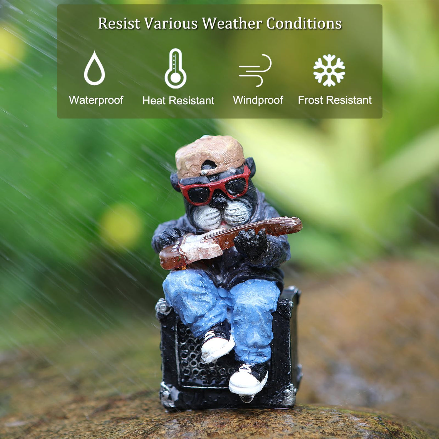 Foxmis Solar Dog Outdoor Statues Figurine For Garden Decorations, Whimsical Outside Decor With Guitar Clearance For Patio Balcon