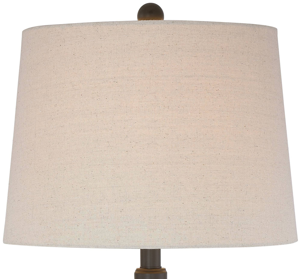 - **Pre-Assembled Shade**: The lamps feature iron-bronze finish bases crafted from durable metal, paired with tapered cream fabric drum shades. Each lamp comes with a 6-foot long black cord and plug, ensuring flexibility in placement and use.
