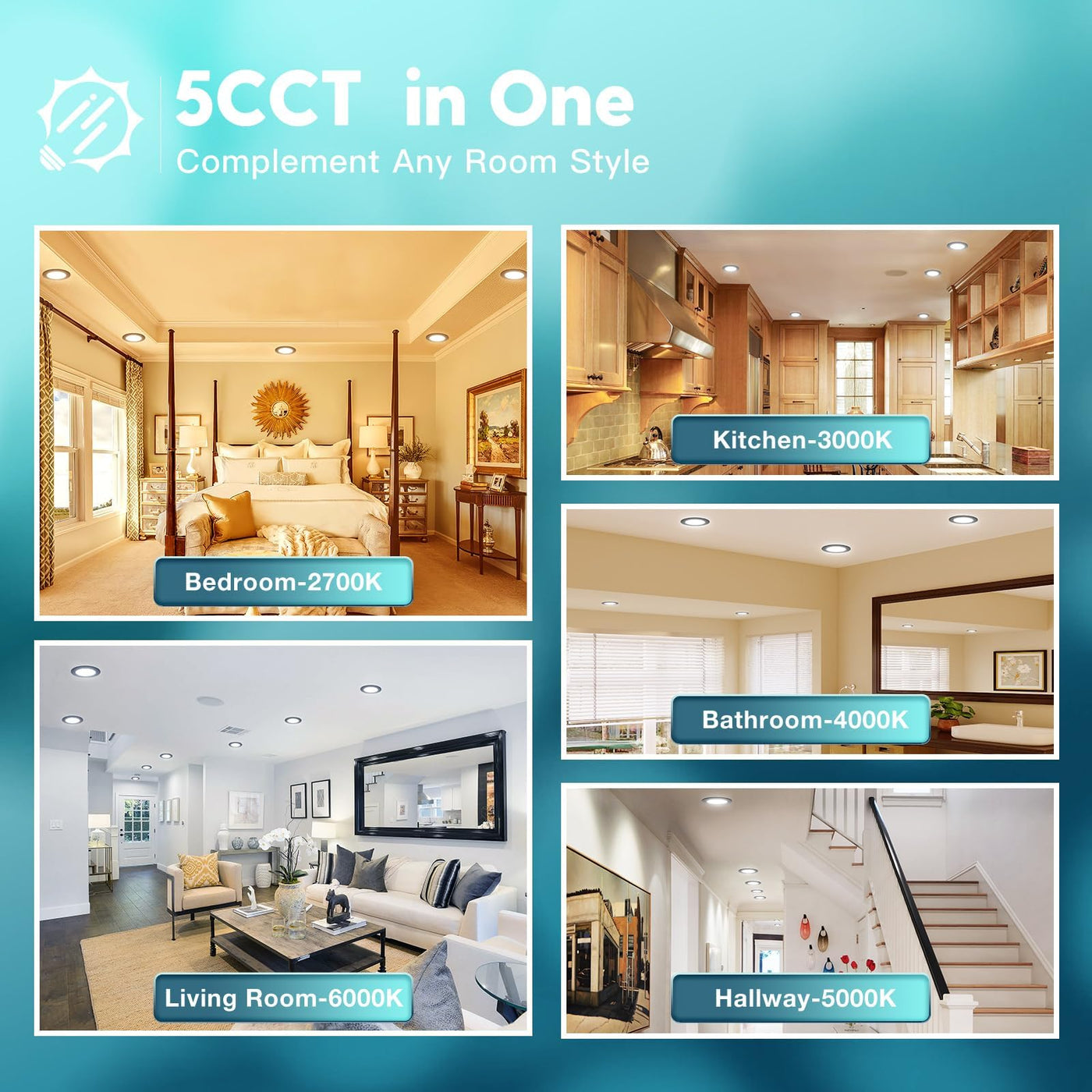 Q: What color temperatures are available for the FREELICHT 12 Pack Retrofit LED Recessed Lighting?A: The FREELICHT recessed lighting offers five selectable color temperatures: 2700K, 3000K, 4000K, 5000K, and 6000K. This feature allows you to choose the perfect ambiance for your space without the hassle of returning or exchanging products due to incorrect color choices.