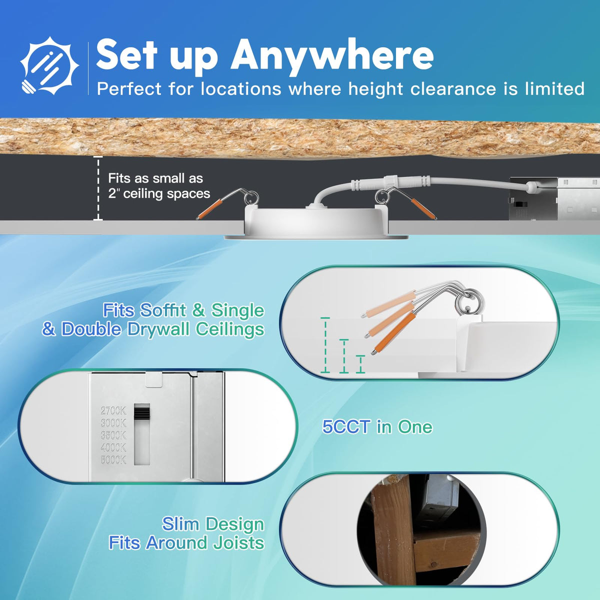 Freelicht 6 Pack 4 Inch 5Cct Ultra-Thin Led Recessed Ceiling Light With Junction Box, 2700K/3000K/3500K/4000K/5000K Selectable,