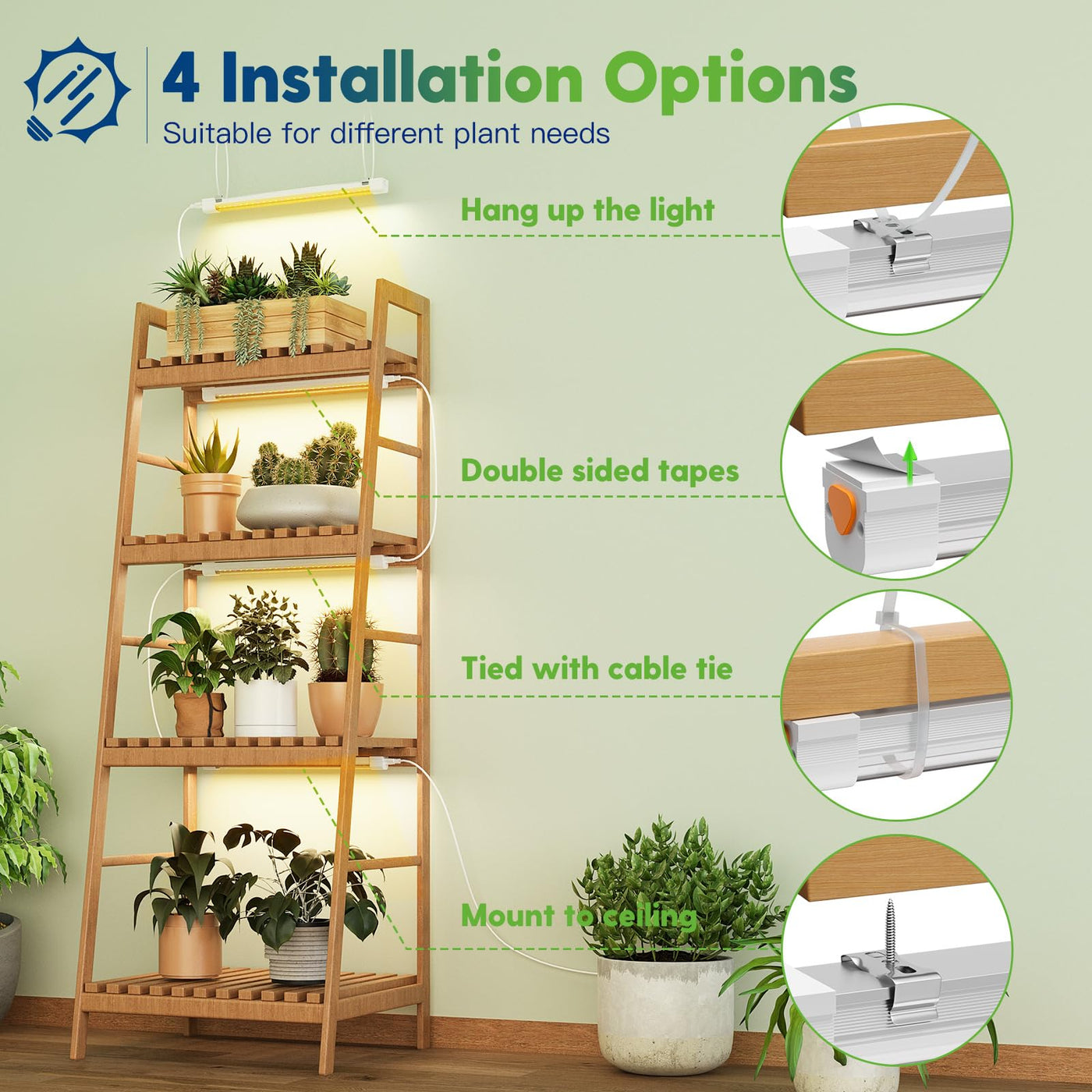 FREELICHT T8 Grow Lights for Indoor Plants, 1FT Full Spectrum Plant Lights, 20W(2 x 10W), 4 Installation Methods, Linkable LED Grow Light Strips for Greenhouse Plant Shelf Succulent Seeding, 2 Pack