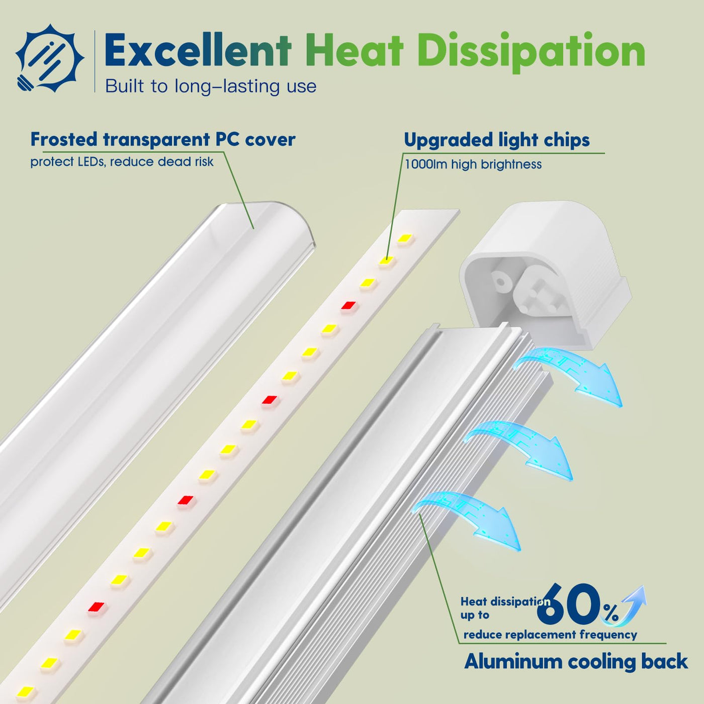 Freelicht T8 Grow Lights For Indoor Plants, 1Ft Full Spectrum Plant Lights, 20W(2 X 10W), 4 Installation Methods, Linkable Led G