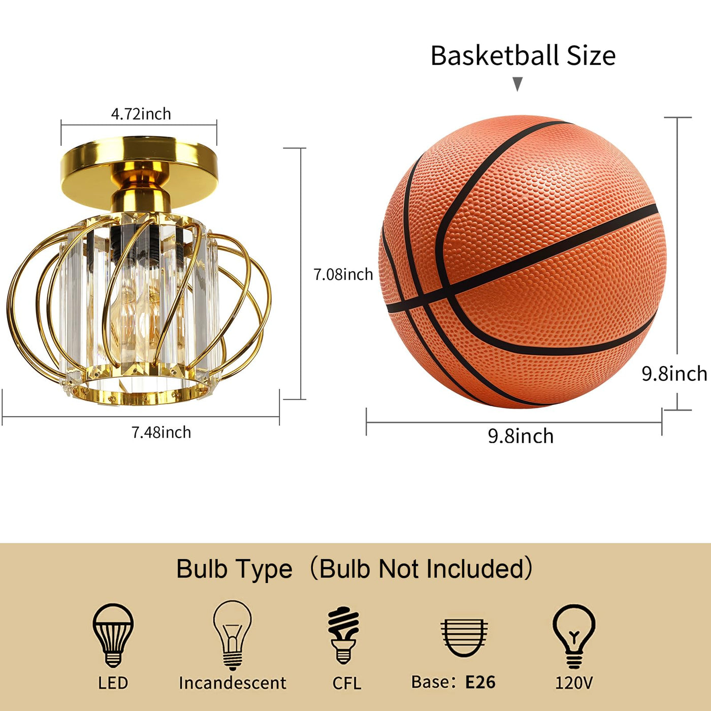 Q: What are the dimensions of this ceiling light fixture?A: The ceiling light fixture has a diameter of 7.48 inches, a base width of 4.72 inches, and a height of 7.08 inches. Its compact size makes it ideal for spaces with lower ceilings.