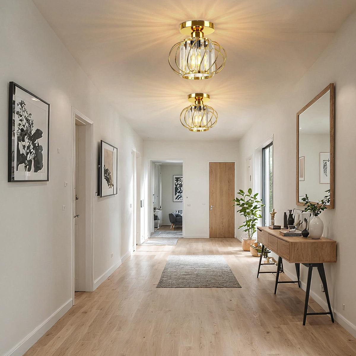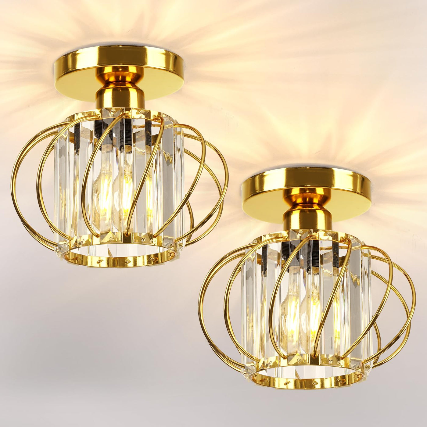 Frideko Home 2 Pack Crystal Ceiling Light Fixture - Modern Semi Flush Mount Ceiling Light Mini Crystal Chandelier Hallway Light