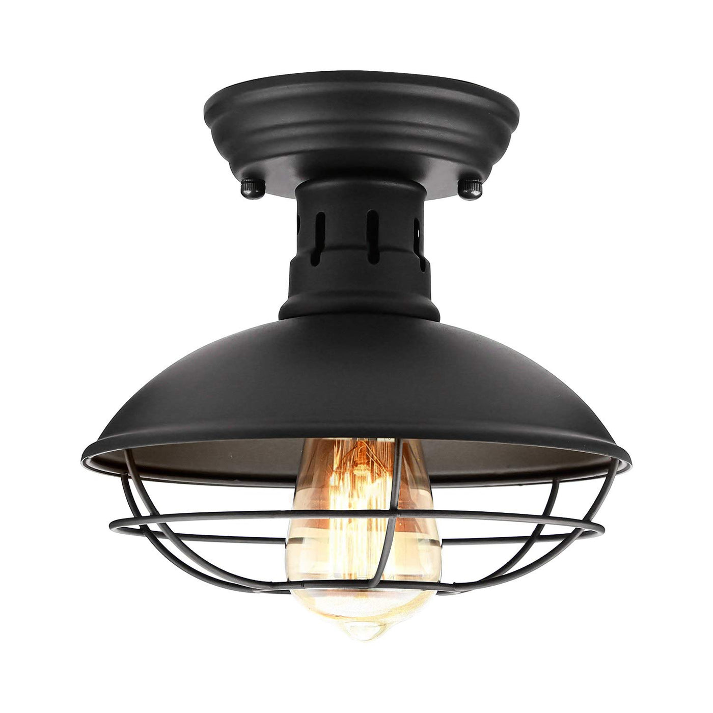 FRIDEKO HOME Farmhouse Flush Mount Ceiling Light - Black Metal Cage, E26 Base, 1 Pack, Industrial Design for Hallway, Kitchen, Porch