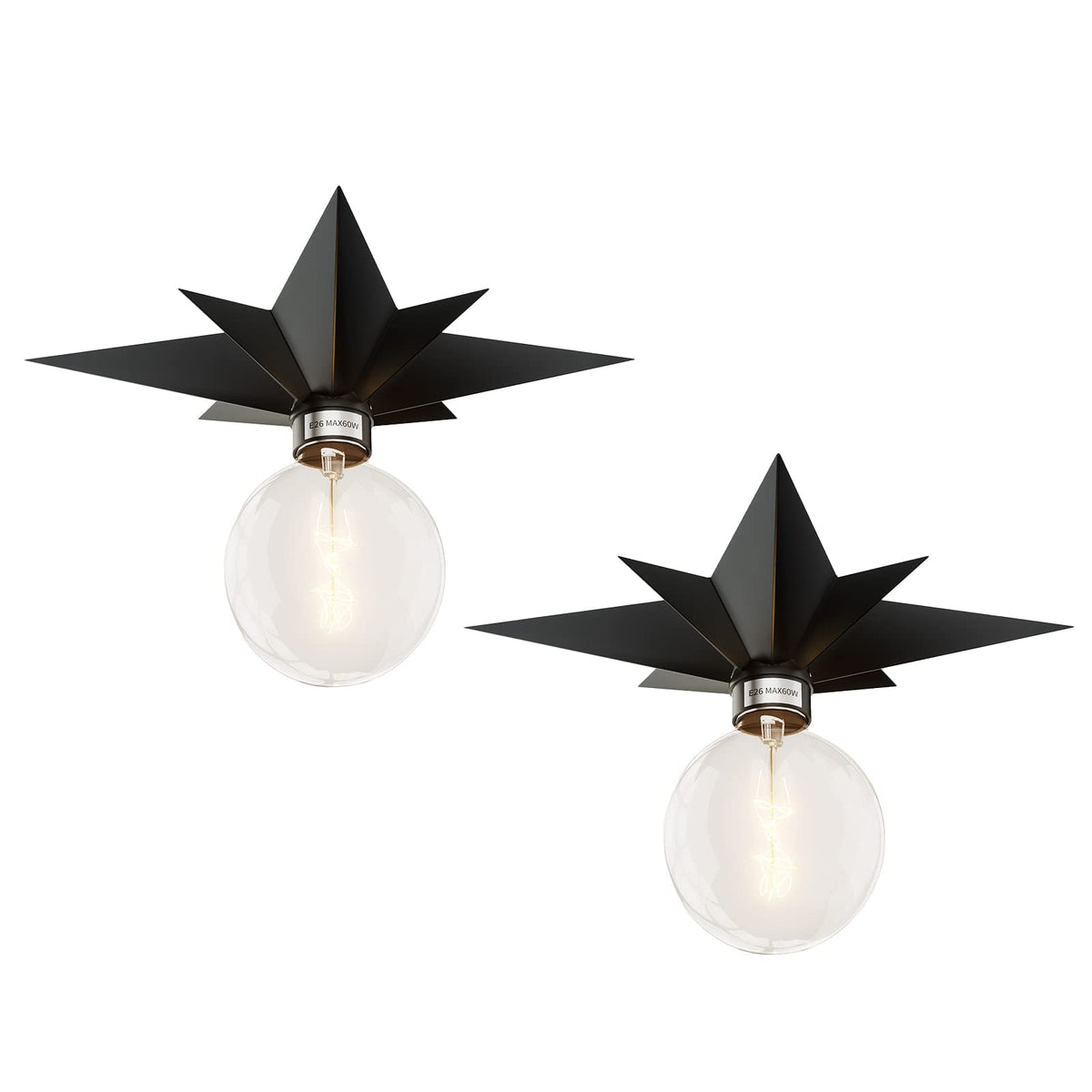 FRIDEKO HOME Flush Mount Ceiling Light - 2 Pack Black Metal Star Fixtures - Modern Design for Kitchen, Hallway, Bathroom