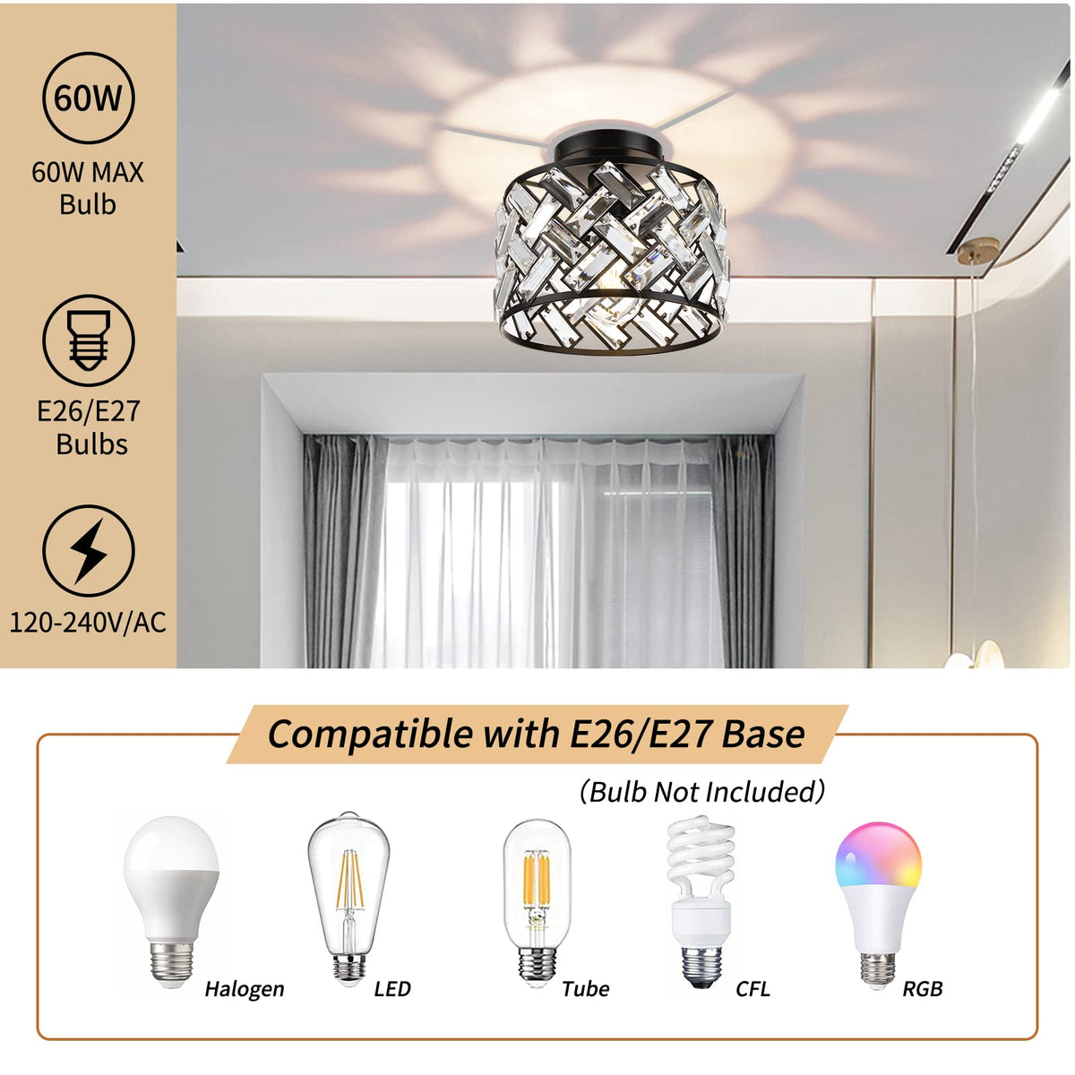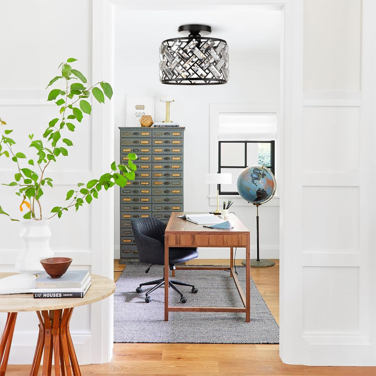 Frideko Home Light Fixtures Ceiling Mount - Black Hallway Light Fixtures Crystal Semi Flush Mount Bedroom Ceiling Lighting For K