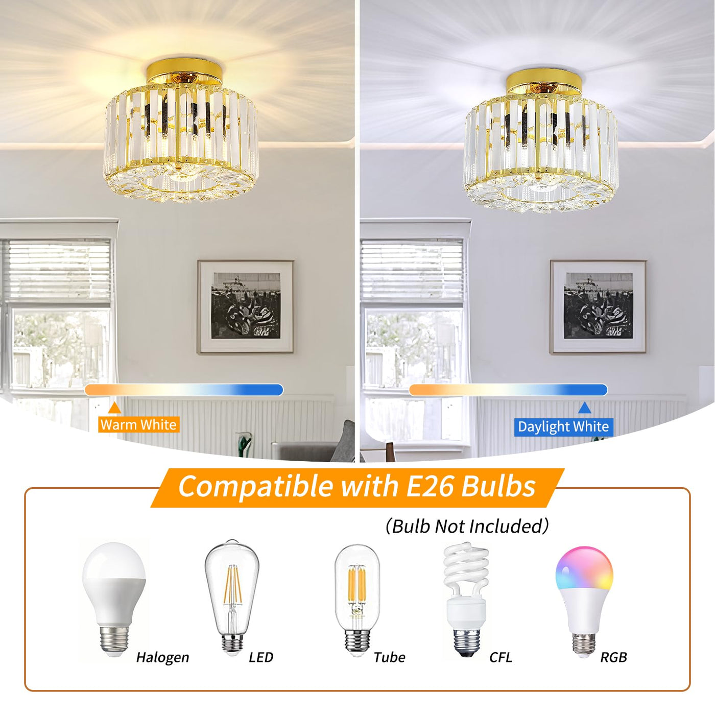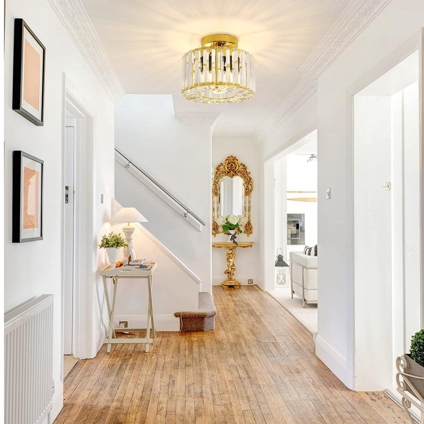 Frideko Home Semi Flush Mount Ceiling Light - Hallway Light Fixtures Ceiling Crystal Chandelier Gold Bedroom Chandelier For Entr