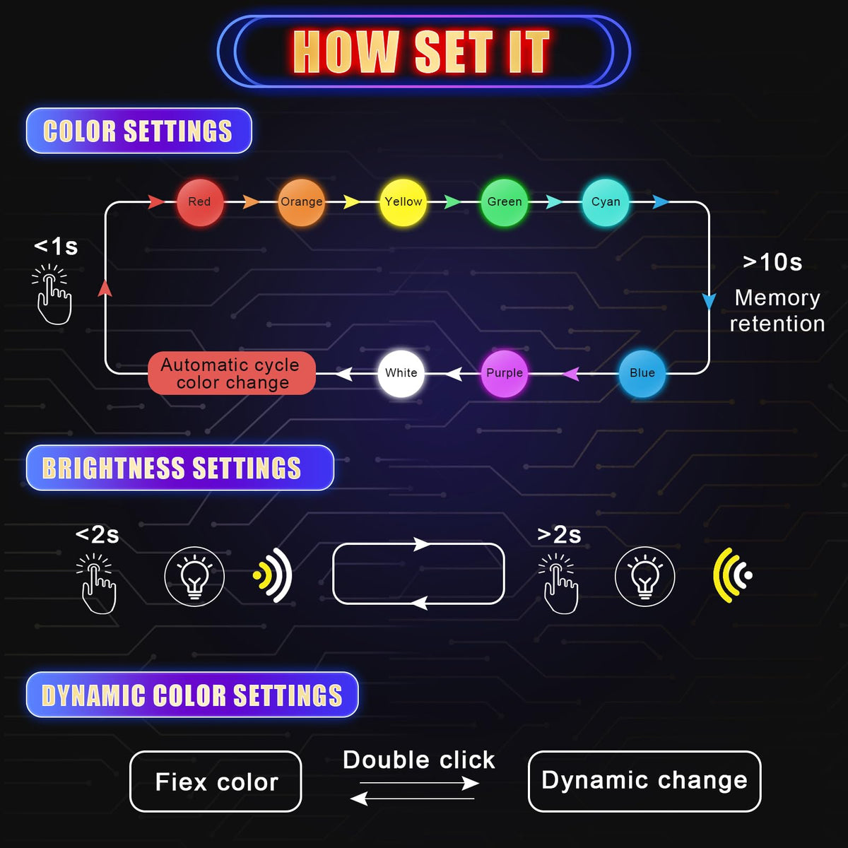 Features: Nice brightness setting: If you like stable color in fixed brightness, long click the button for 2s to switch the light dimmer or brighter. 8 Color to choose: You can switch colors by single click, and if you keep clicking again after white, it will be in automatic cycle color change. Specification: Color: red, orange, yellow, green, cyan, blue, purple and white Material: ABS and aluminum Port: USB Voltage: 5V Note: USB Type-C and USB-C are registered trademarks of USB Implementers Forum.