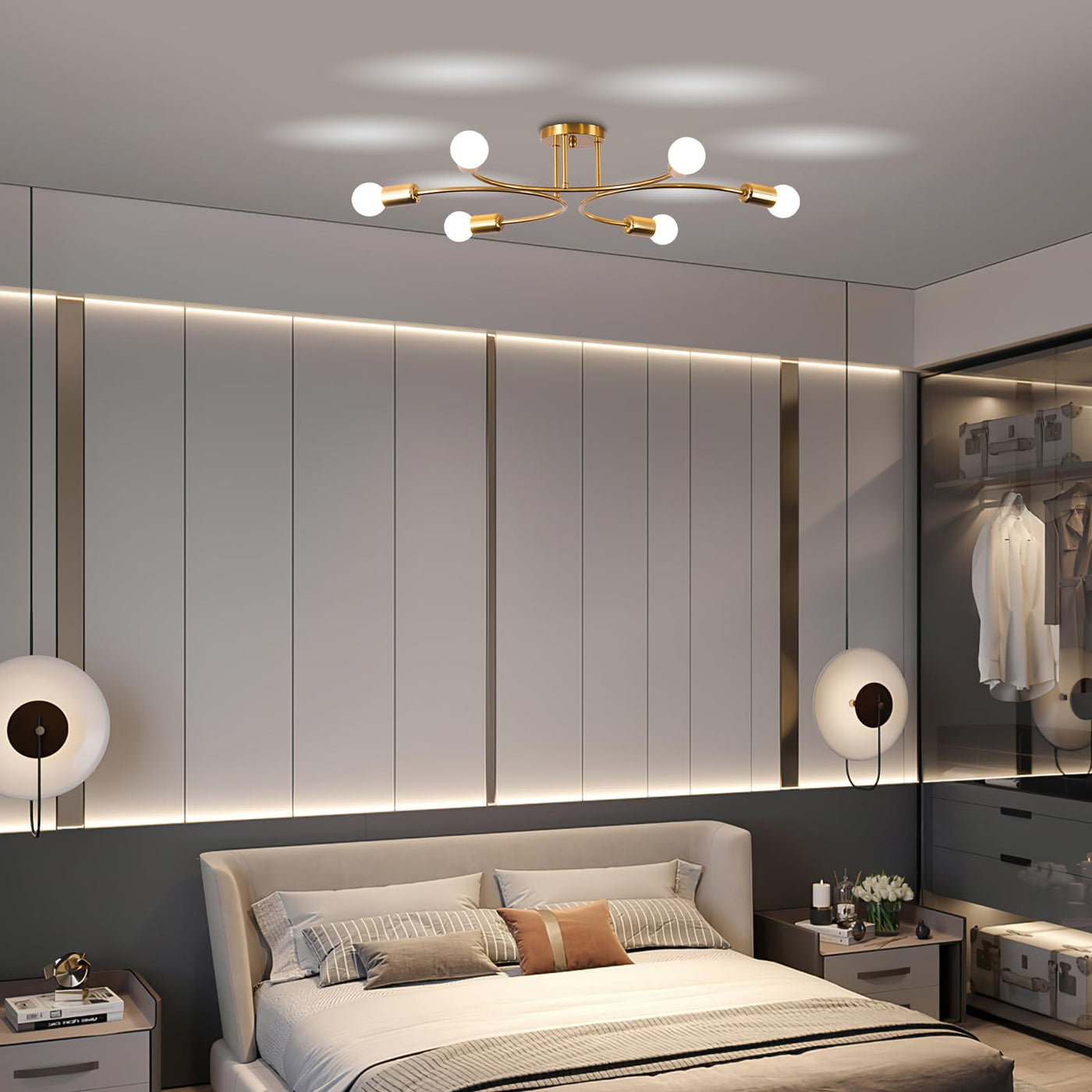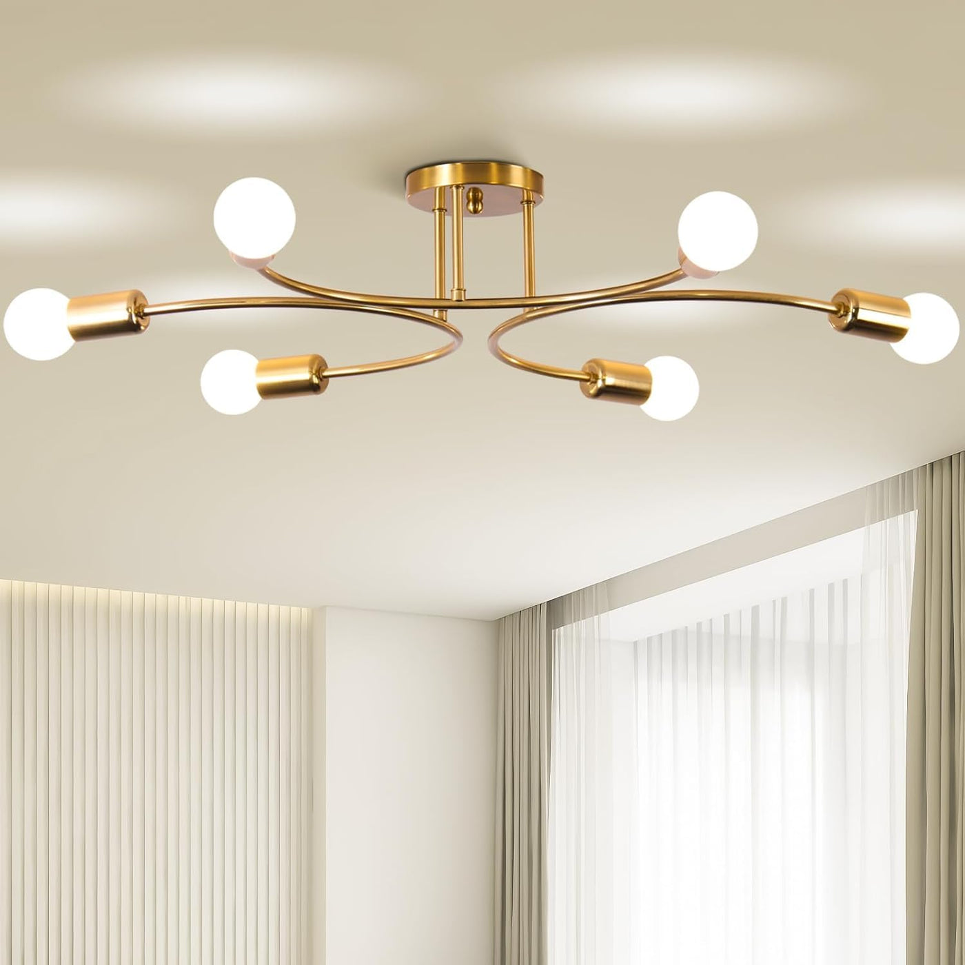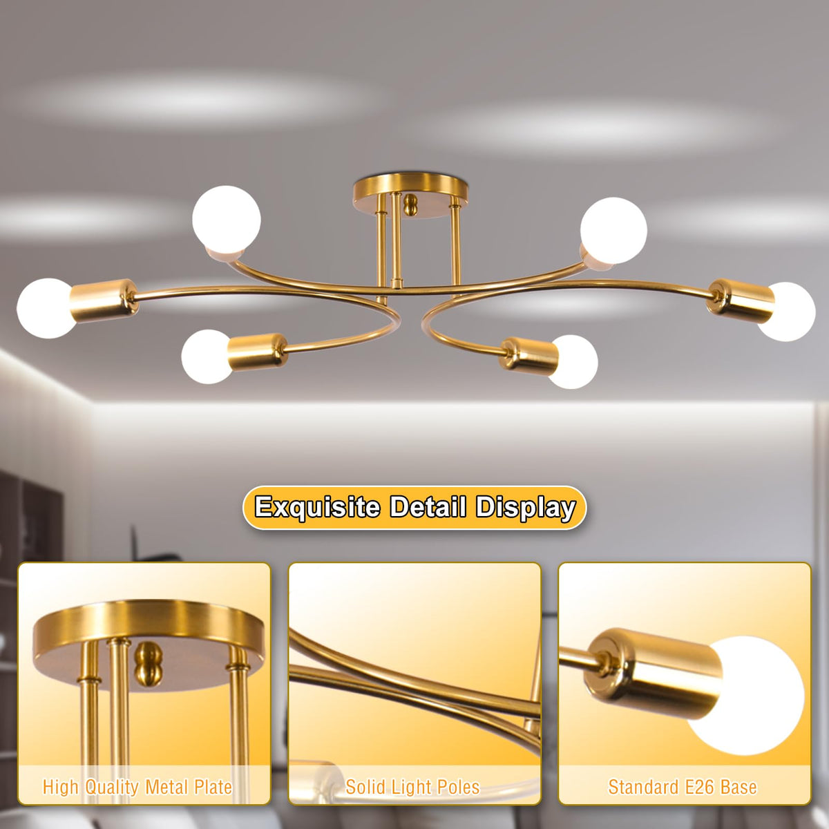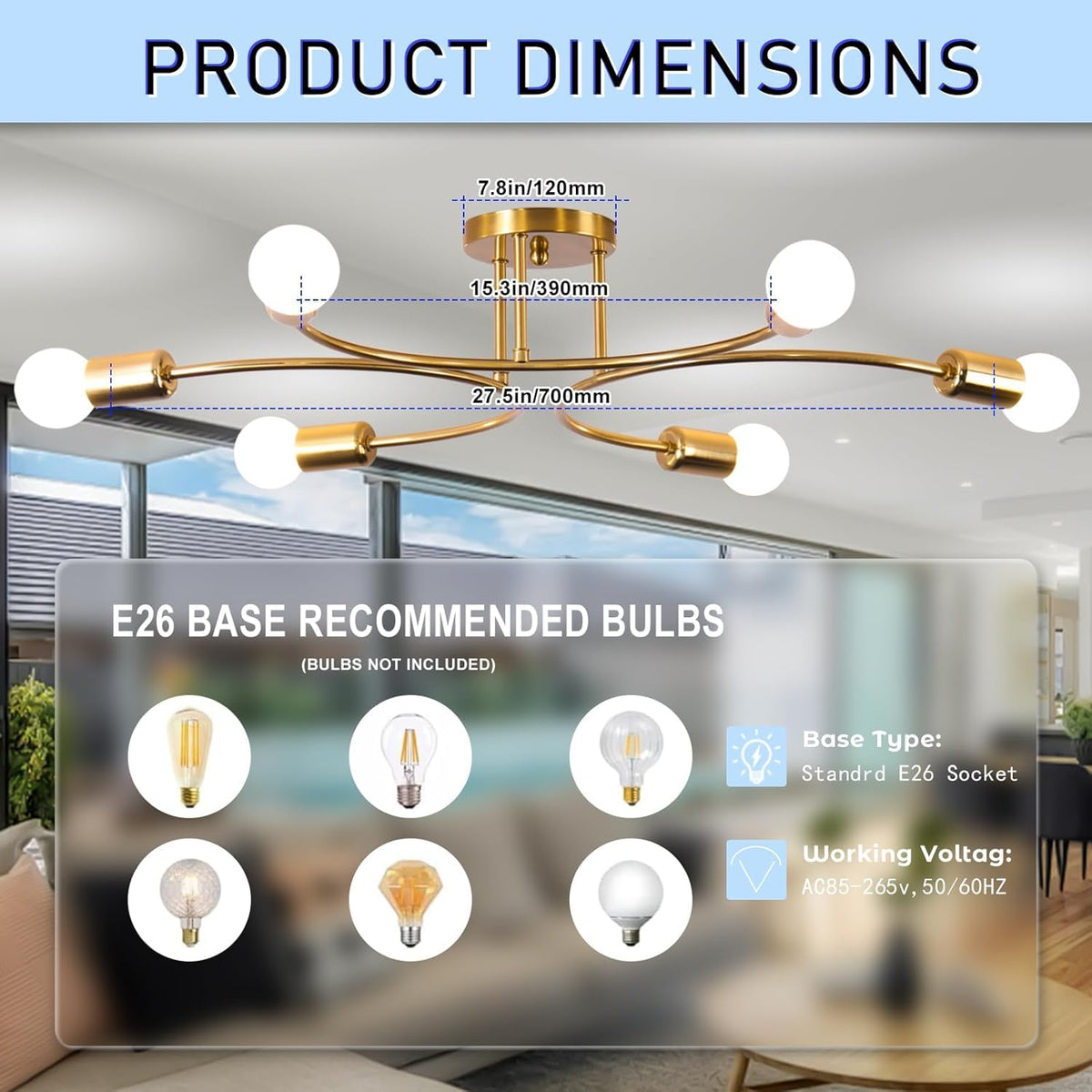 Name:&Nbsp;6-Light Sputnik Chandelier Ceiling Light Fixture Color: Black/Gold Compatible With E26 Bulbs &Amp; Dimmer:The Semi Flush Mount Ceiling Light With Standard Usa Socket Requires 6 E26 Light Bulbs, Compatible With Led, Incandescent, Or Cfl Bulbs (60W Max/Light) (Bulbs And Switches Not Included). Wide Application:&Nbsp;The Semi Flush Mount Ceiling Light Fixture Is Suitable For Bedroom, Dining Room, Living Room, Kitchen, Hallway, Study Room, Bookcase, Balcony, Porch, Etc. It Brightens And Decorates Your House. Easy To Install:Included All Mounting Hardware For Quick And Easy Installation.