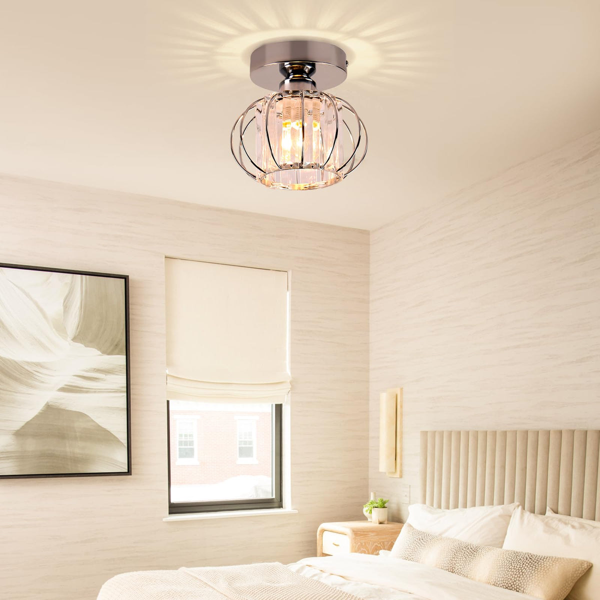 Yangfan Lights Is Committed To Achieve Utility Plus Styling That Intensifies A High-Quality, Functional Beauty And Affordable Lighting Design Products To Every Customers. Specification Size:Lampshade: D7''(18Cm)Xh7''(18Cm).Ceiling Base :3.9''(10Cm) Material: Crystal/Stainless Steel Install Type:Flushmount Color: Gold/Black/Chrome Voltage:Ac110-260V Socket:1* E26 Bulb Base. Max 60W .Compatible With Incandescent,Led,Cfl Blub (Bulb Is Not Included) Package Included:1 *Crystal Ceiling Light Features ? Exquisite Design: This Elegant Simple Ceiling Light Features Modern Simple Design With Crystals And Iron Cage Lampshade, Helps To Decorate Your Home And Add A Comfortable Ambiance. ? Splendor And Sparkle At Its Very Best :Crystal Chandelier Shines Through The Clear Crystals Spheres To Emits Stunning Light,It Casts A Beautiful Shadow On Ceiling Definitely Wowed Interior Decoration. Attention Turn Off The Power Before Installation. We Suggest This Light Must Be Installed By Professional Electrician . This Crystal Ceiling Light Is Recommended For Indoor Use Only. The Chandelier Lighting Is Built In Crystal Glass Which Belongs To Fragile Items. Upon Receipt Of Your Package,If There Is Any Questions,Please Feel Free To Contact Us.