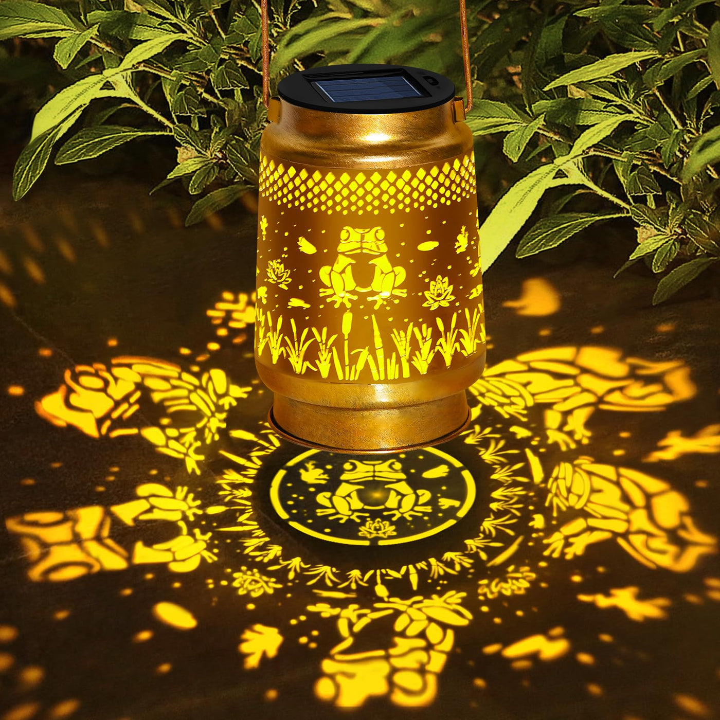 EDOF solar frog lanterns can project unique and funny patterns in a dim environment,creating a gorgeous and warm atmosphere to bring life and fun to your garden and attract your family or friends.The unique hollow out design and beautiful antique bronze color give it an artistic touch,design is very nice,very durable and will catch everyone? eye! EDOF solar lanterns delightful addition for decorating garden,backyard,corner,Porch,door step,sidewalk and many other scene.frog solar hanging lights is perfect for Mother's Day,Father's Day,Thanksgiving,Christmas,Valentine's Day,birthday,wedding,New Year's and housewarming gifts for mothers,fathers,moms,dads, wives,husbands, grandmothers,grandfathers, lovers, daughters,sons, friends or yourself.It's definitely a unique and surprising frog gifts!