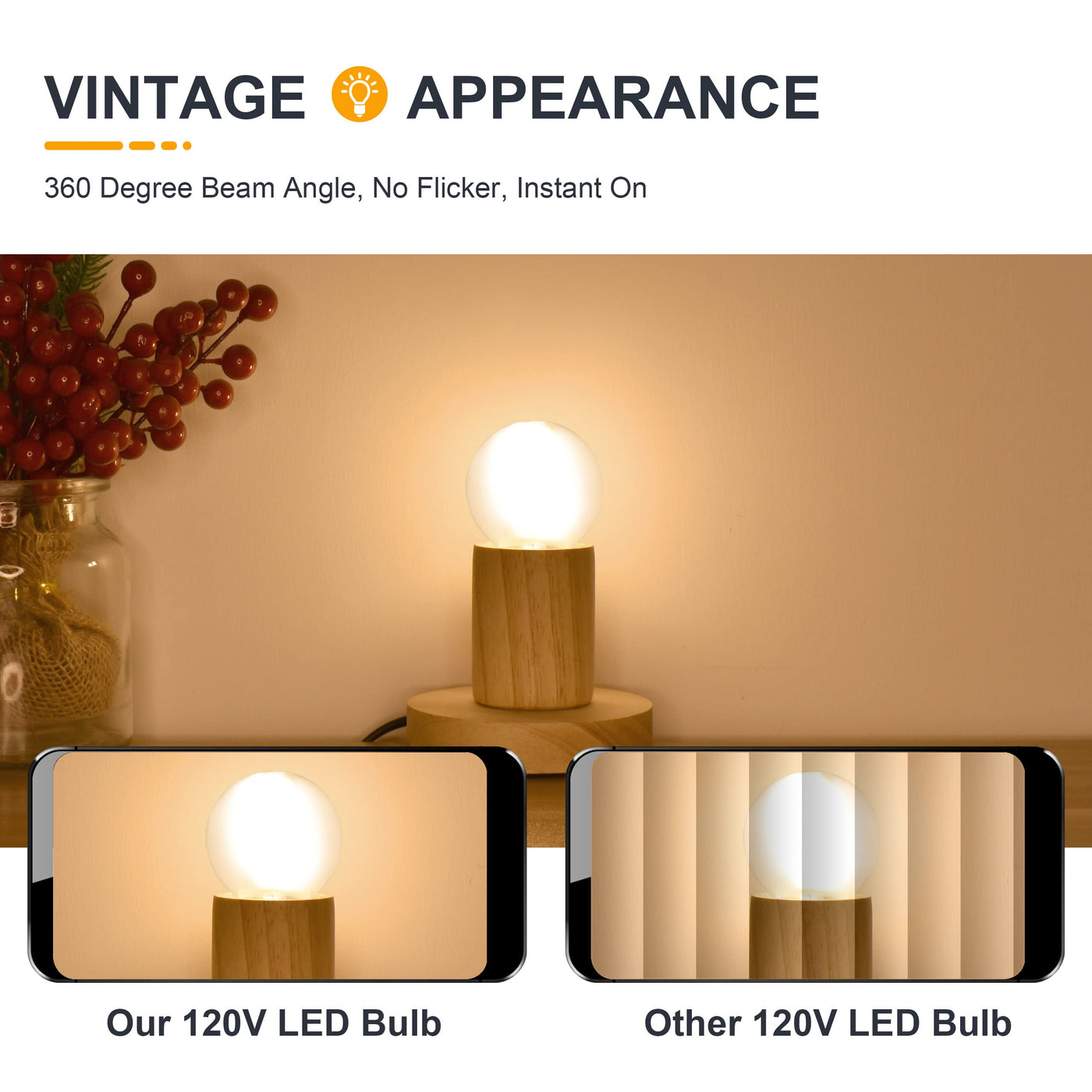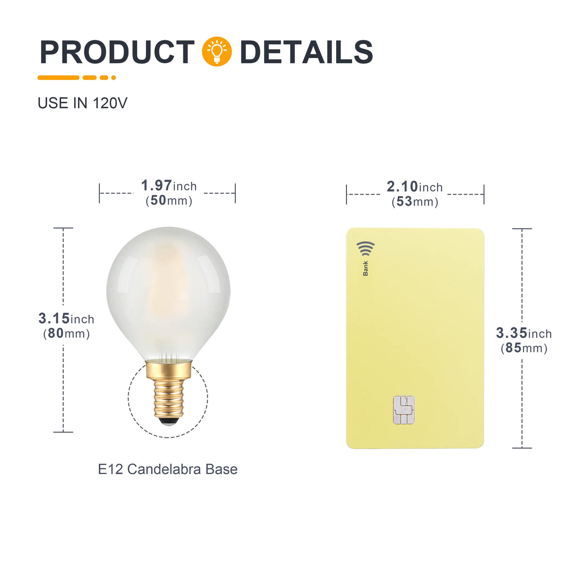 TOKCON Dimmable E12 Candle Base Globe LED Edison Bulb: Advanced LED chips, integrated circuit design ensure our G16.5 round LED light bulbs free from flicker and noise. Reduce the suffering of eye strain and maintain maximum eye comfort. Providing 200 lumens of 2700k soft warm white light. Specification: Voltage: 120V Power: 2W(25 Watt Equivalent) Beam angle: 360 Bulb Base: E12 Screw Base Color Temperature: 2700K Soft Warm White Brightness: 200 Lumens Lifespan: 25,000 hours Features: -High Bright LEDs, 2W 200lm bright enough to replace 15W/25W halogen/Incandescent Bulb -High CRI, 85Ra to create a healthy and real visual -No Flicker or UV/ IR, No noise, Soft Warm White color, protect your eyes and offer comfortable lighting -Easy To Install, screw into your E12 lamp, auto adapt the positive and negative pole of AC wiring -All-Round Safety, including fire resistance and short-circuit protection to give you peace of mind while you power on Applications: Works for any Chandelier, Pandent Light, Ceiling Fans, Wall Sconces, Vanity Lighting, Ceramic Christmas Tree Lamp, Reading Lamp, Curio/Display Cabinets, Moroccan Lanterns, Bathroom Sconces, Wooden Shelving, Desk/Table Lamp, Display Case, China Hutch, Retro Bankers Fixture, Piano Lamp and Industrial Exposed Bulb Light Fixture with E12 sockets. If you have any issues please contact us via e-mail, we'll respond within 24 hours to make it right.