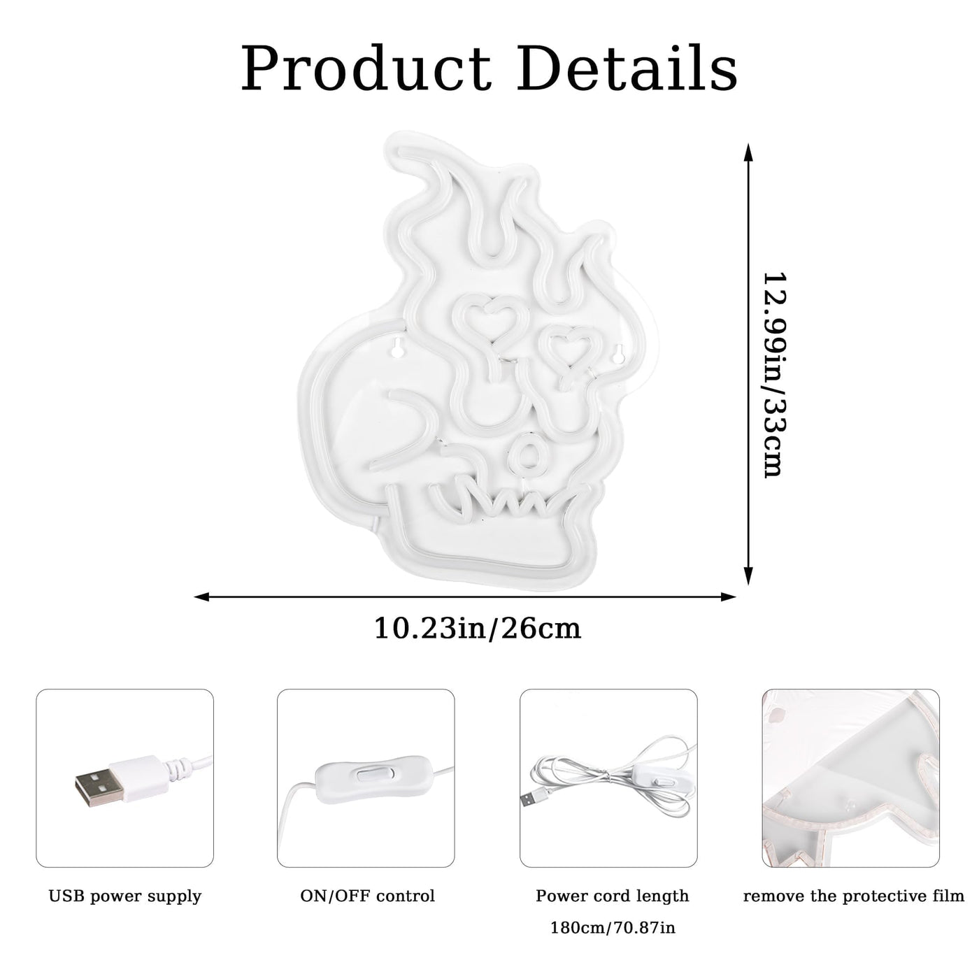 Q: What occasions is the Skull Fire Neon Sign suitable for?A: This neon sign makes a fantastic gift for birthdays, weddings, Christmas, or Halloween parties, adding a unique touch to celebrations and home decor.