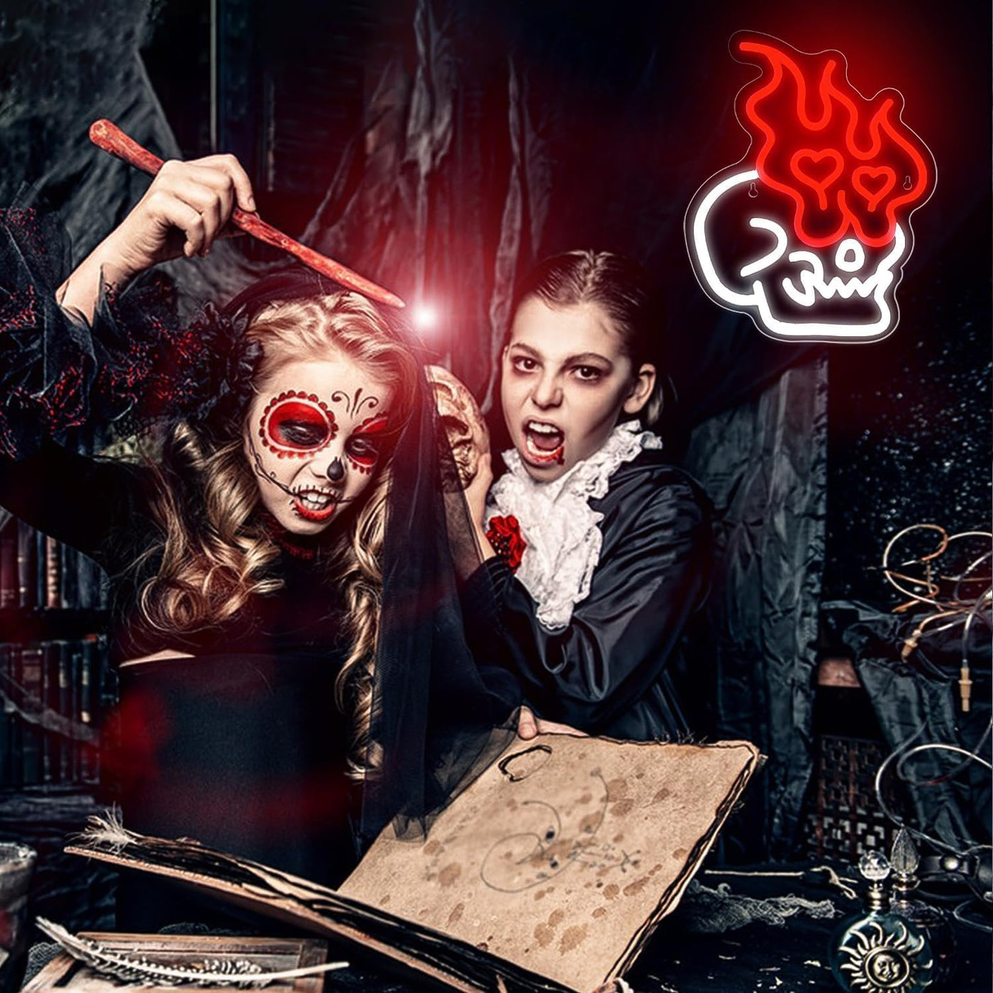 Ftmggdg Halloween Skull Fire Neon Sign - Led Neon Light For Decor, 10.4*13 Inches