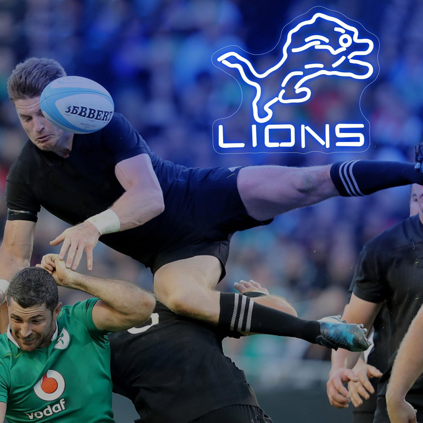 Ftmggdg Lions Neon Football Sign - Led Sports Decor Light For Man Cave, Bedroom, Club, 14.6X12.