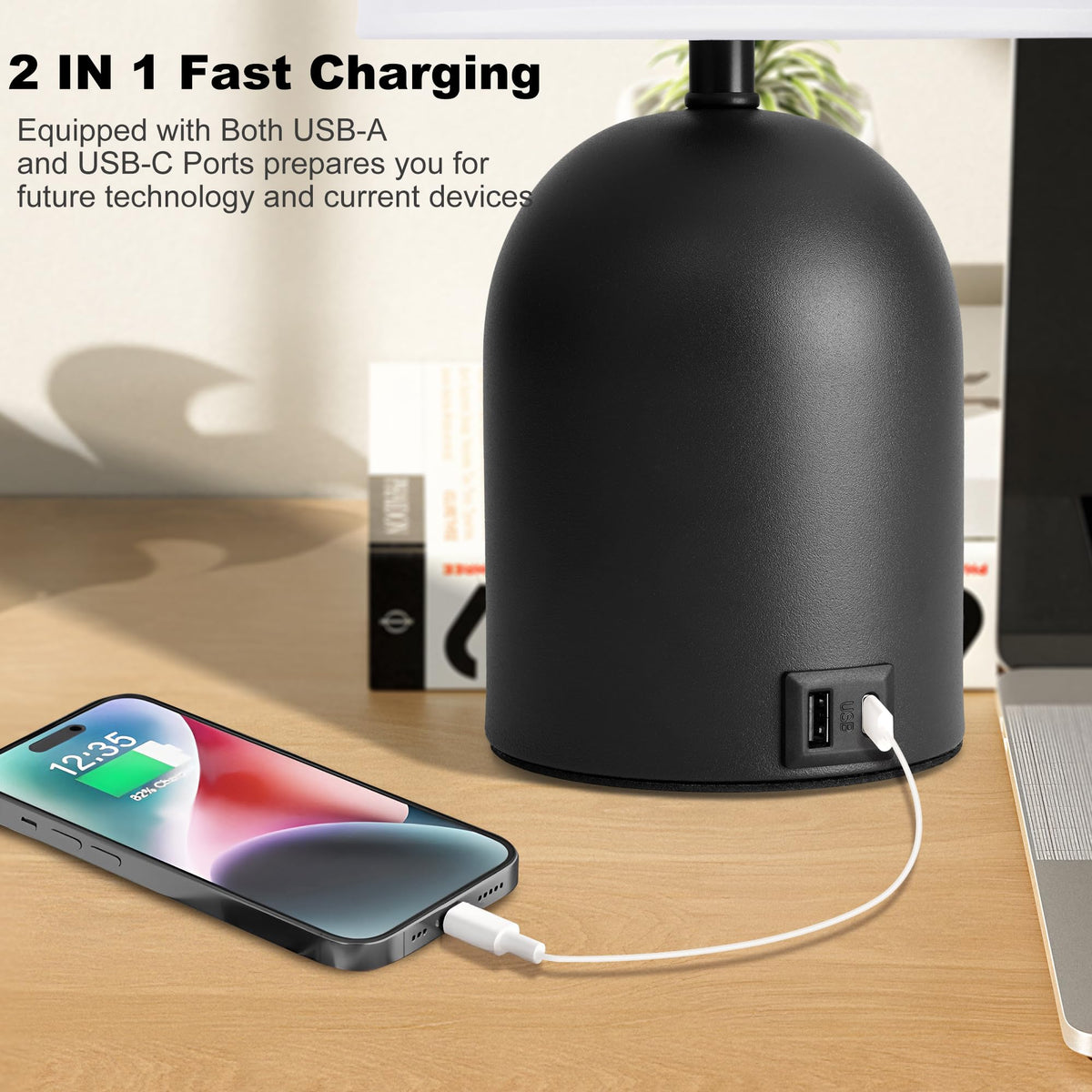Fttoyoly Bedside Table Lamp for Bedroom, 3 Way Dimmable Touch Nightstand Lamp with USB C and A PortsEnhance your living or work space with our Matte Stainless Steel Desk Lamp, designed to integrate seamlessly into your daily life. This table lamp is not just a functional item but a piece of modern art that enhances your environment while offering practical benefits. Key Features and Benefits: Immediate Functionality: Avoid the inconvenience of finding and buying a bulb-our lamp includes an energy-efficient LED bulb so you can use it right away. Contemporary Craftsmanship: The base is crafted with a matte stainless steel brushed finish, providing a durable, stylish look that resists fingerprints and smudges. The light grey textured lampshade adds a subtle elegance that complements any decor. Adjustable Brightness for Any Occasion: Easily adjust the brightness with just a touch to suit your needs, whether youre setting a relaxing ambiance or need bright light for detailed tasks. Dual USB Charging: Modern convenience at its best, with the capability to charge multiple devices at once, helping you maintain a clean and organized space. Perfect for Any Home: This lamps timeless design and high-quality materials make it a lasting addition to any room, aligning with various styles from minimalist to industrial. Invest in a lighting solution that combines style, functionality, and immediate use. Our Matte Stainless Steel Desk Lamp offers a sophisticated look with advanced features that cater to modern needs. Purchase now to transform your space with both illumination and elegance.