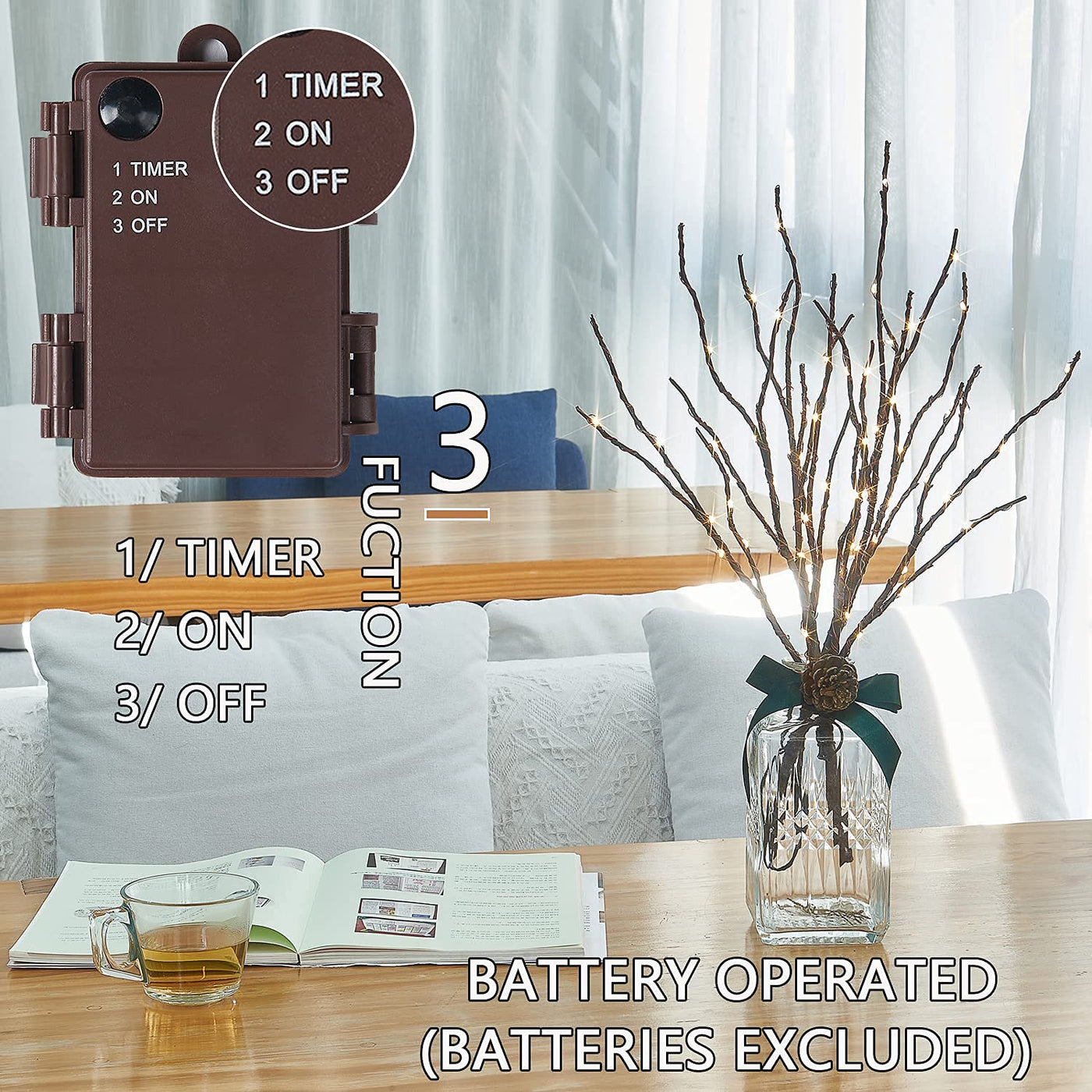 Fudios Lighted Branches With Timer 70 Led Fairy Lights 18In Battery Operated, Willow Branches With Lights For Vase Christmas Holiday Home Decor