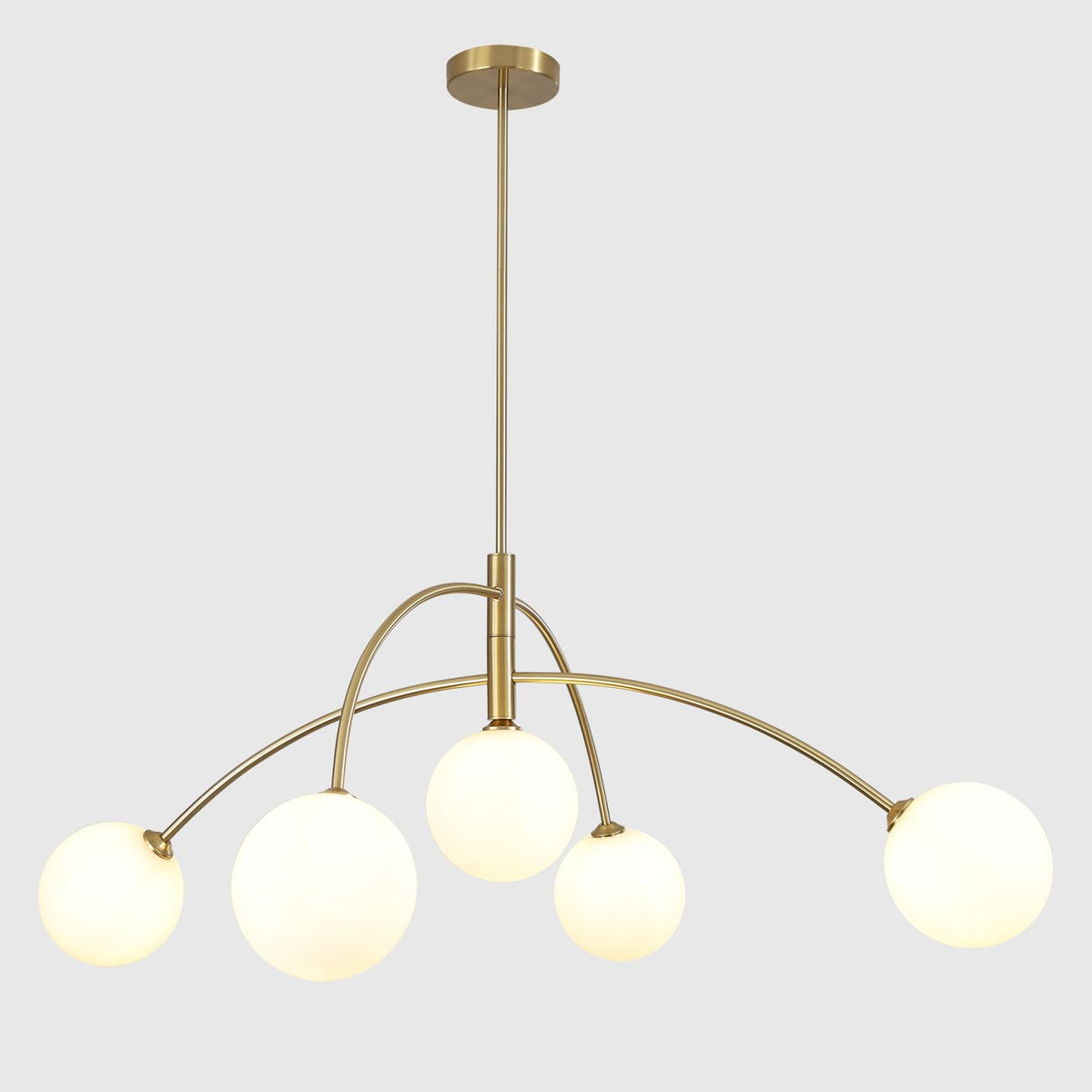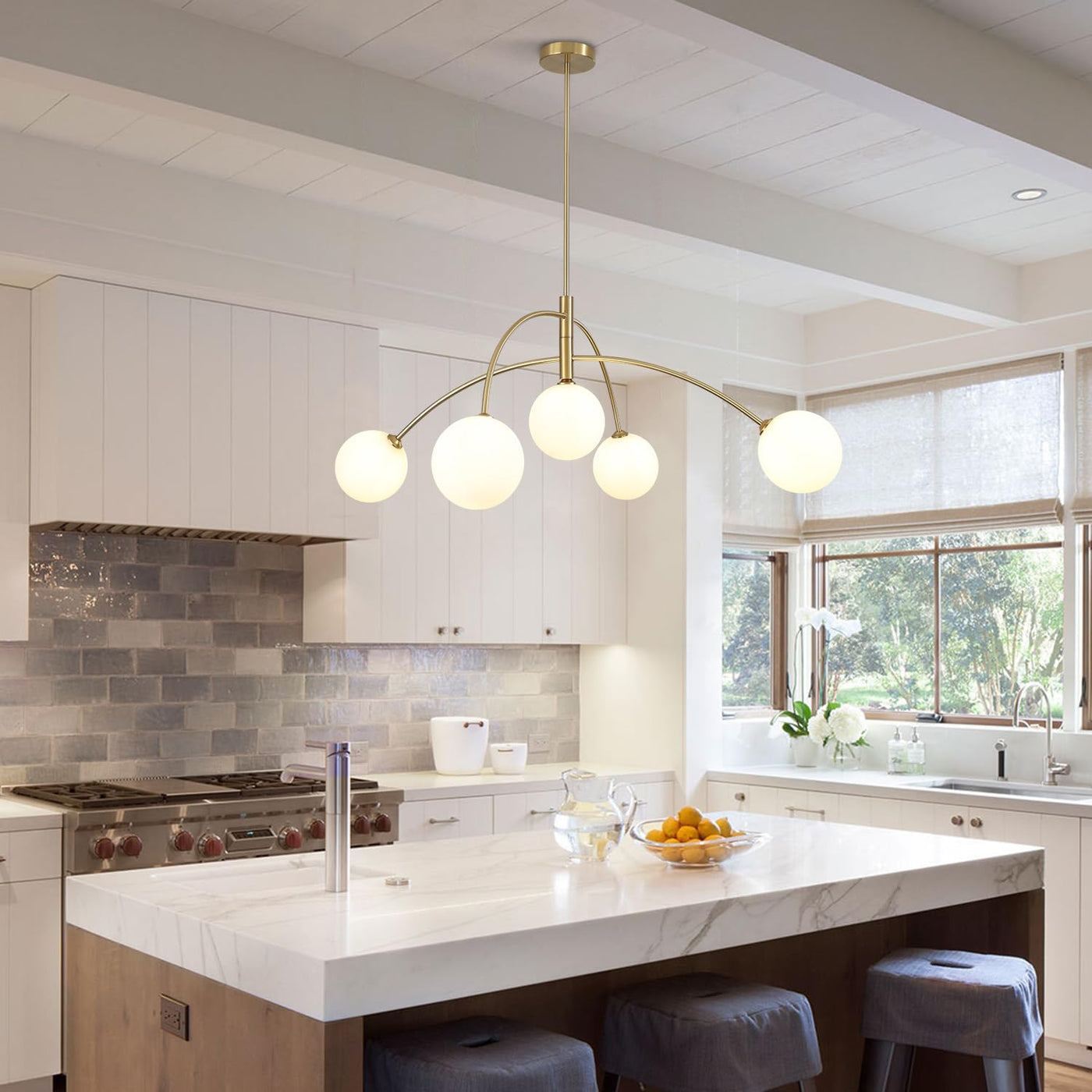 Fulesi Contemporary Gold Ceiling Light 5-Light Glass Globe Lights Mid Century Modern Sputnik Chandelier For Dining Room Kitchen