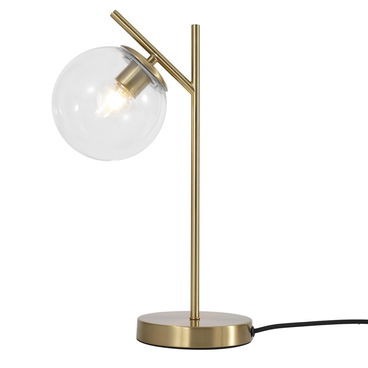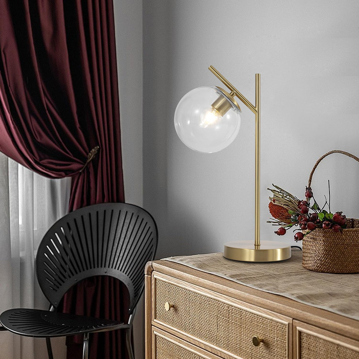 Fulesi Mid Century Modern Table Lamp Contemporary Metal Brass Bedside Lamps With Clear Glass Lampshade Gold Globe Nightstand Lam