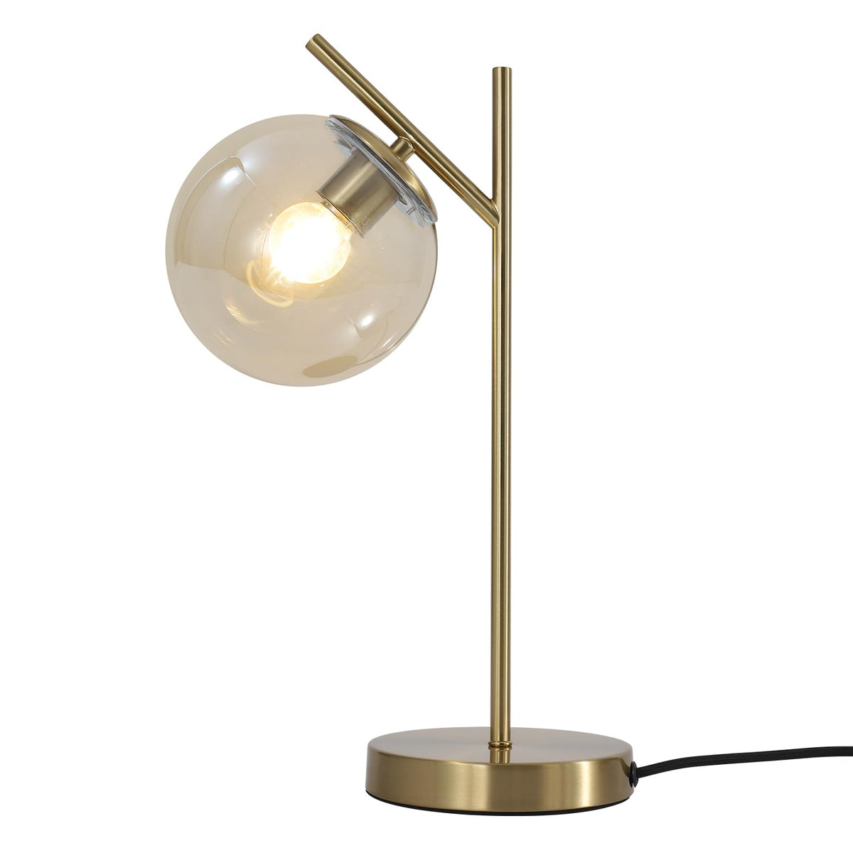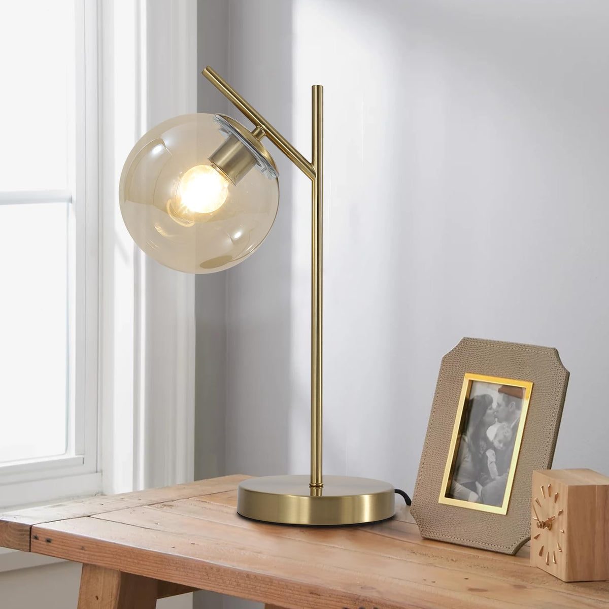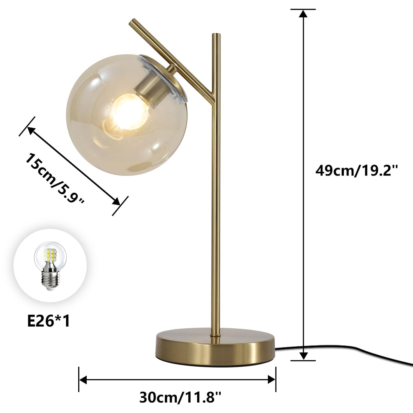 Fulesi Mid Century Modern Table Lamp Gold Globe Nightstand Lamp With Cognacs Glass Lampshade Metal Brass Desk Lamp For Bedroom L